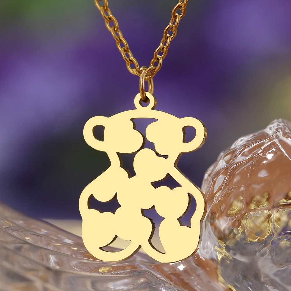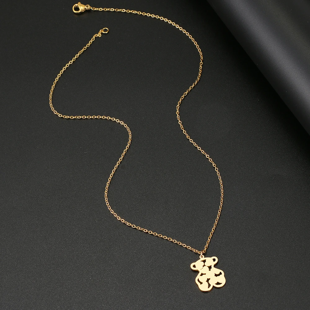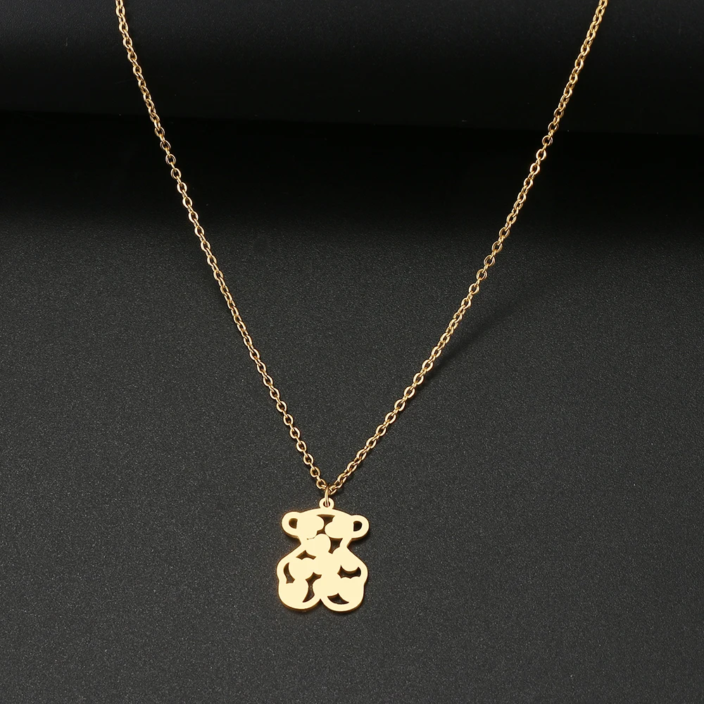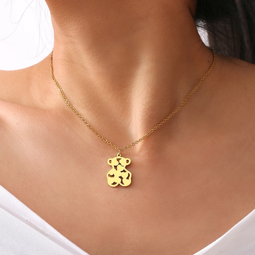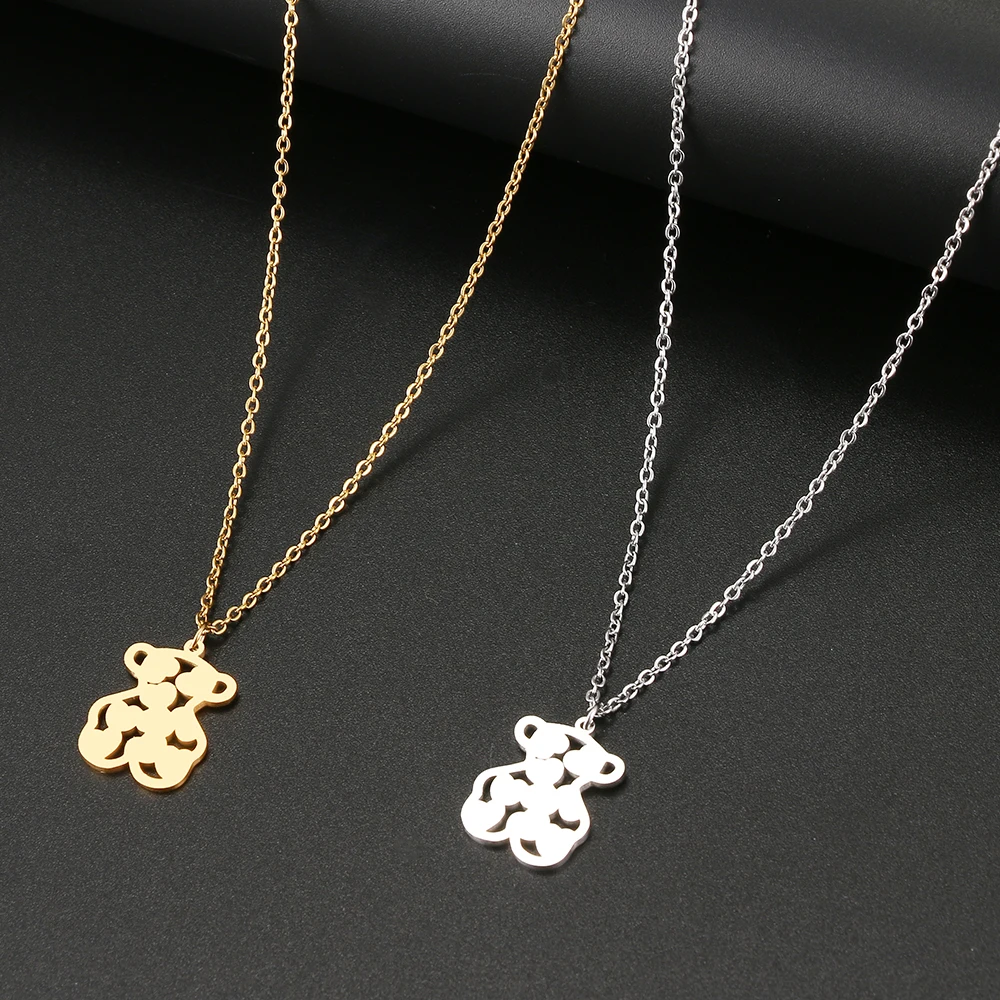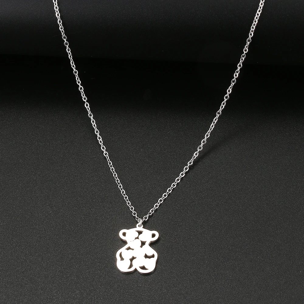 Stainless Steel Necklaces Toy Heart Bear Lovely Pendant Choker Clavicle Chain Necklaces For Women Jewelry Girls Gifts