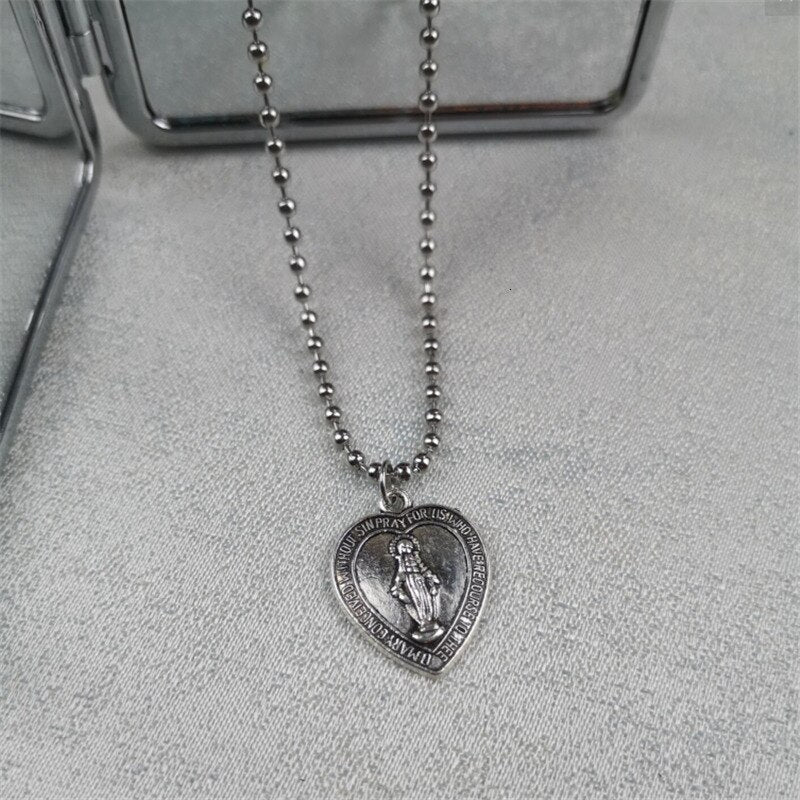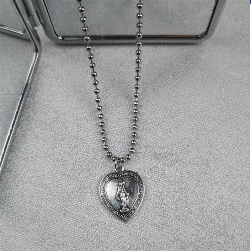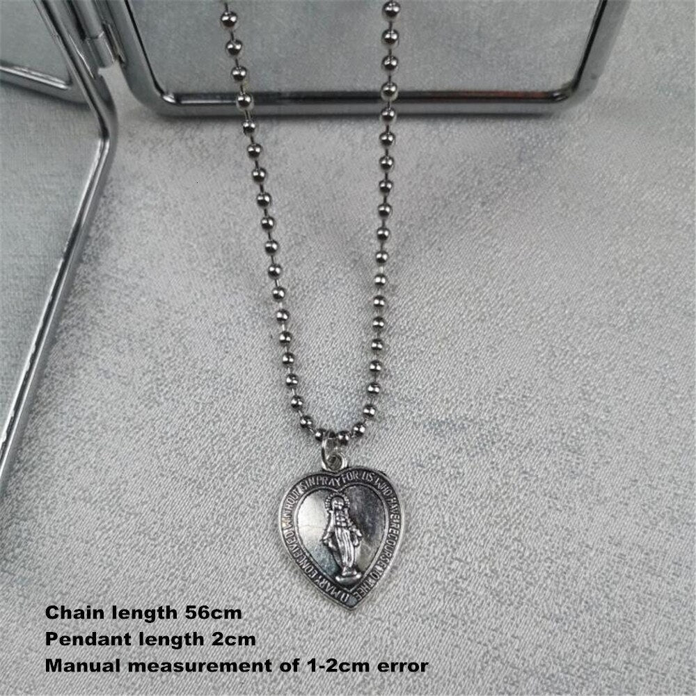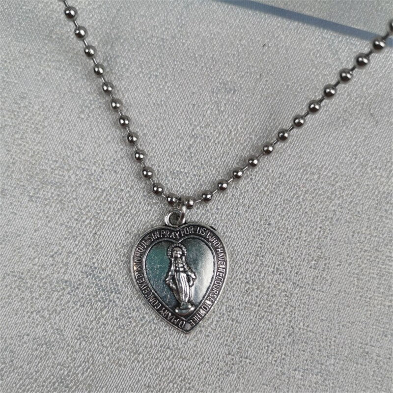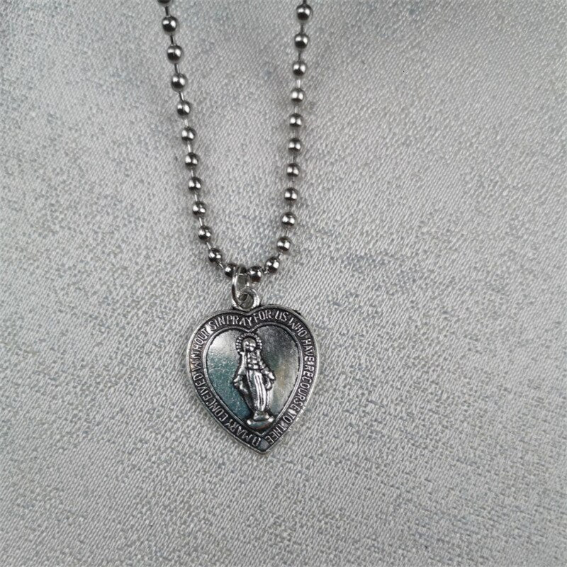 Stainless Steel Sweet Jesus Pendant Beads Choker Necklace Accessories Charm Love Heart Clavicle Chain Women Christian Jewelry