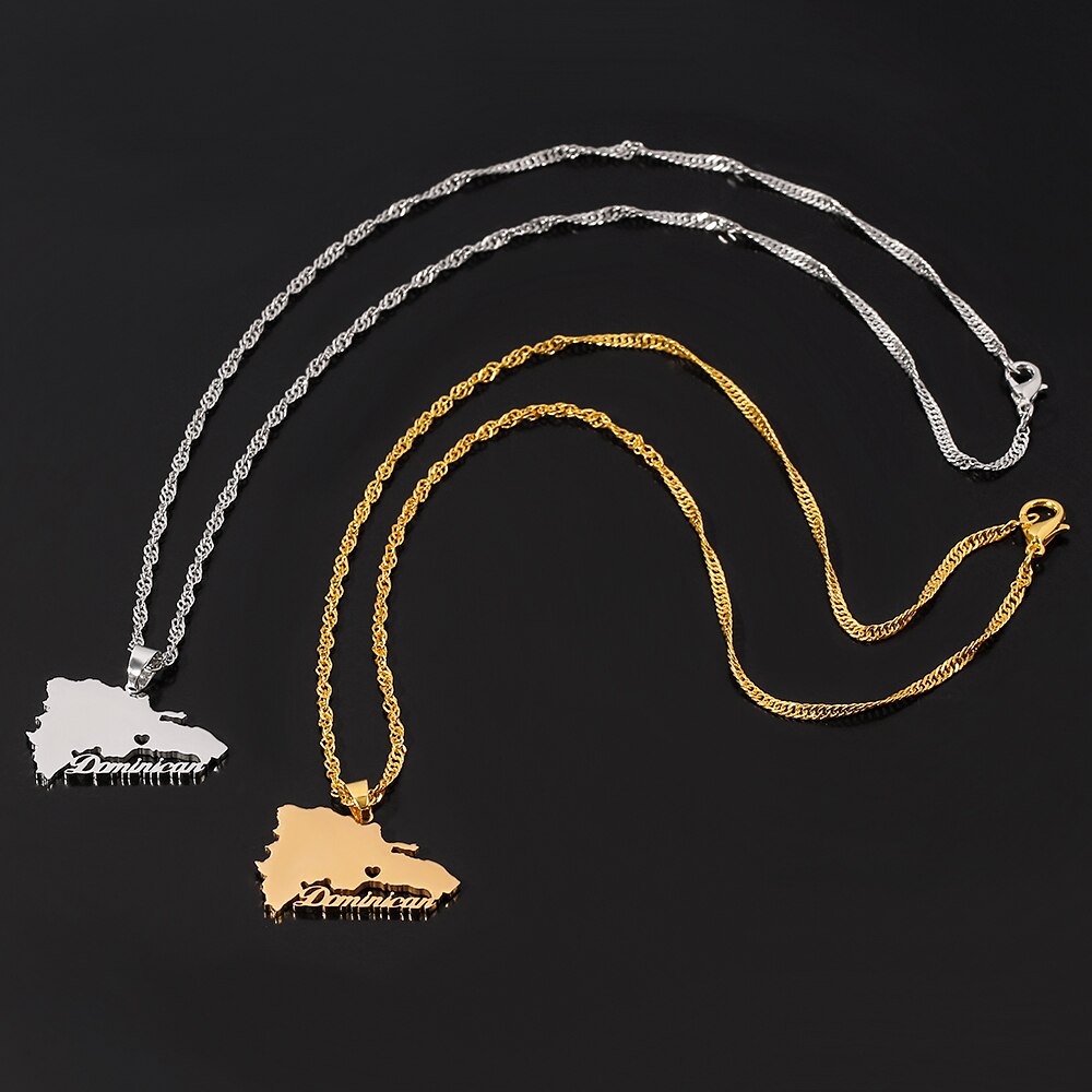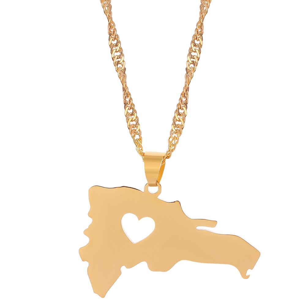 Stainless Steel The Dominican Republic Map Pendant Necklace for Women Dominican Map Jewelry