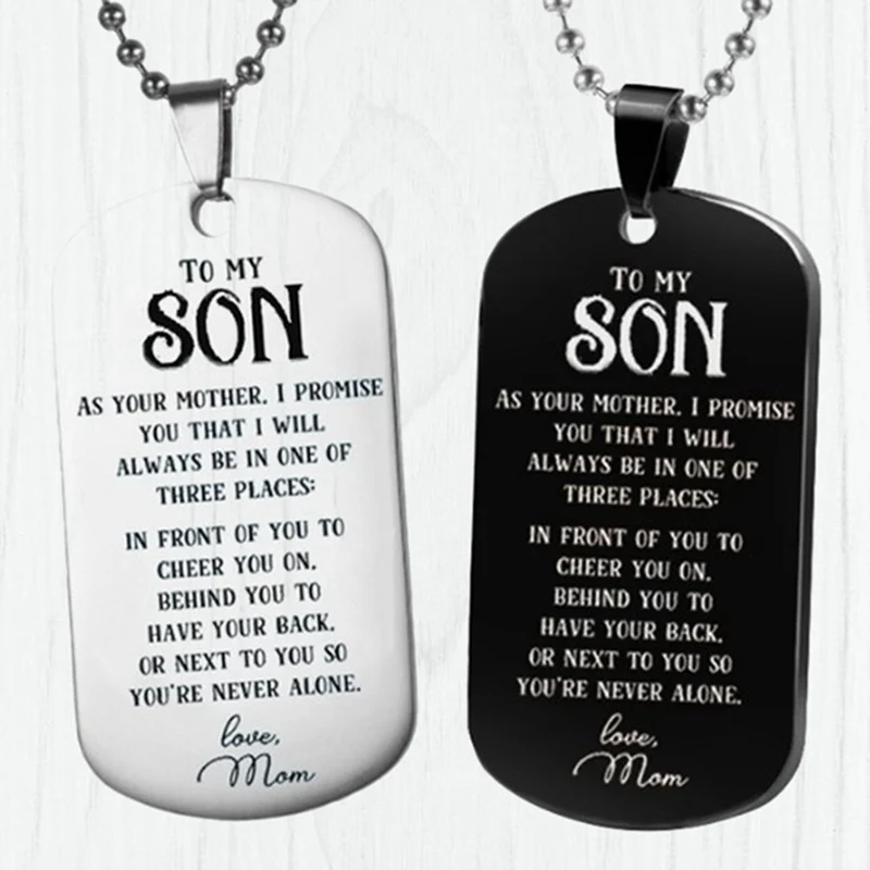 Stainless Steel To My Son From Mom Necklace I Love You Tag Pendant Necklace Key Chain Keyring