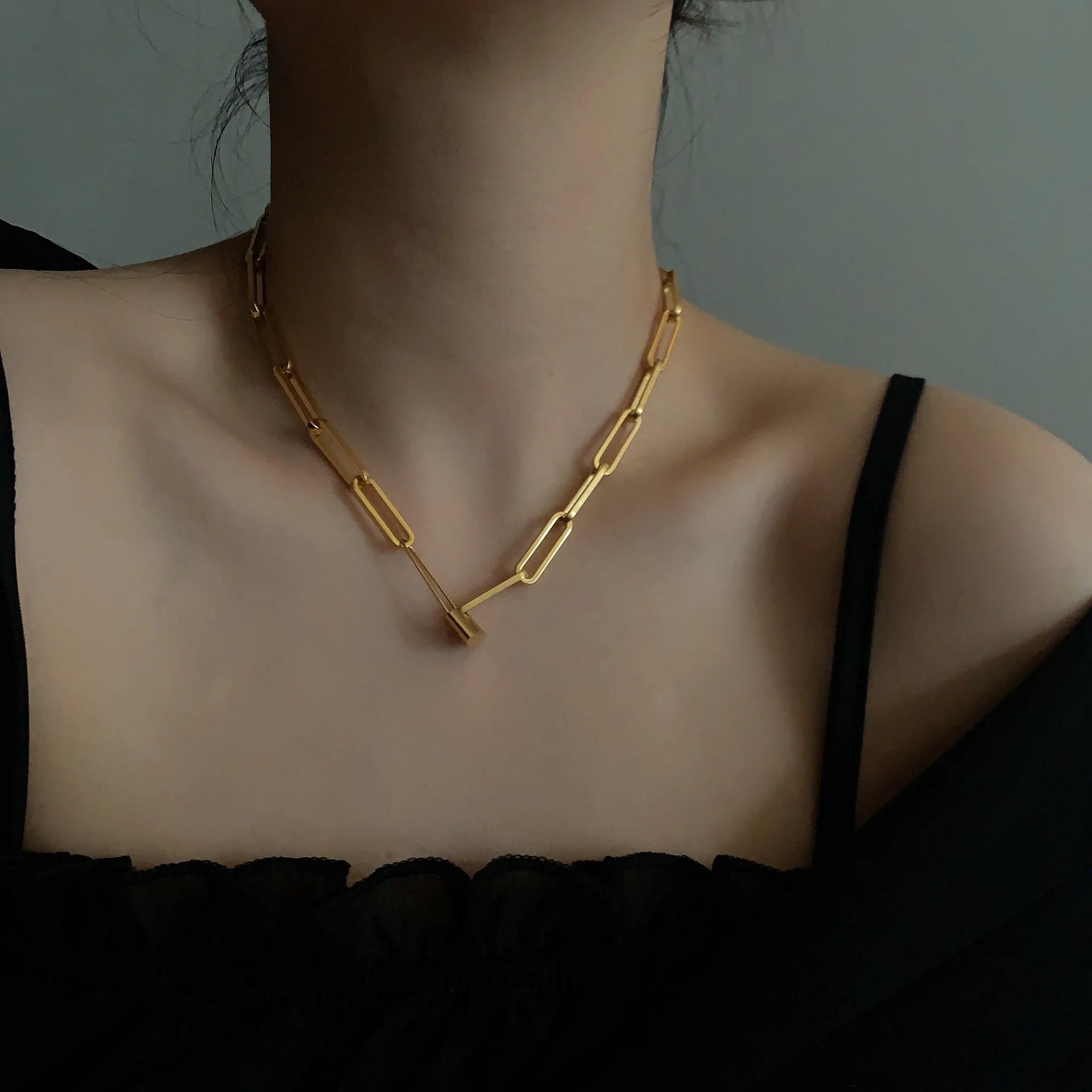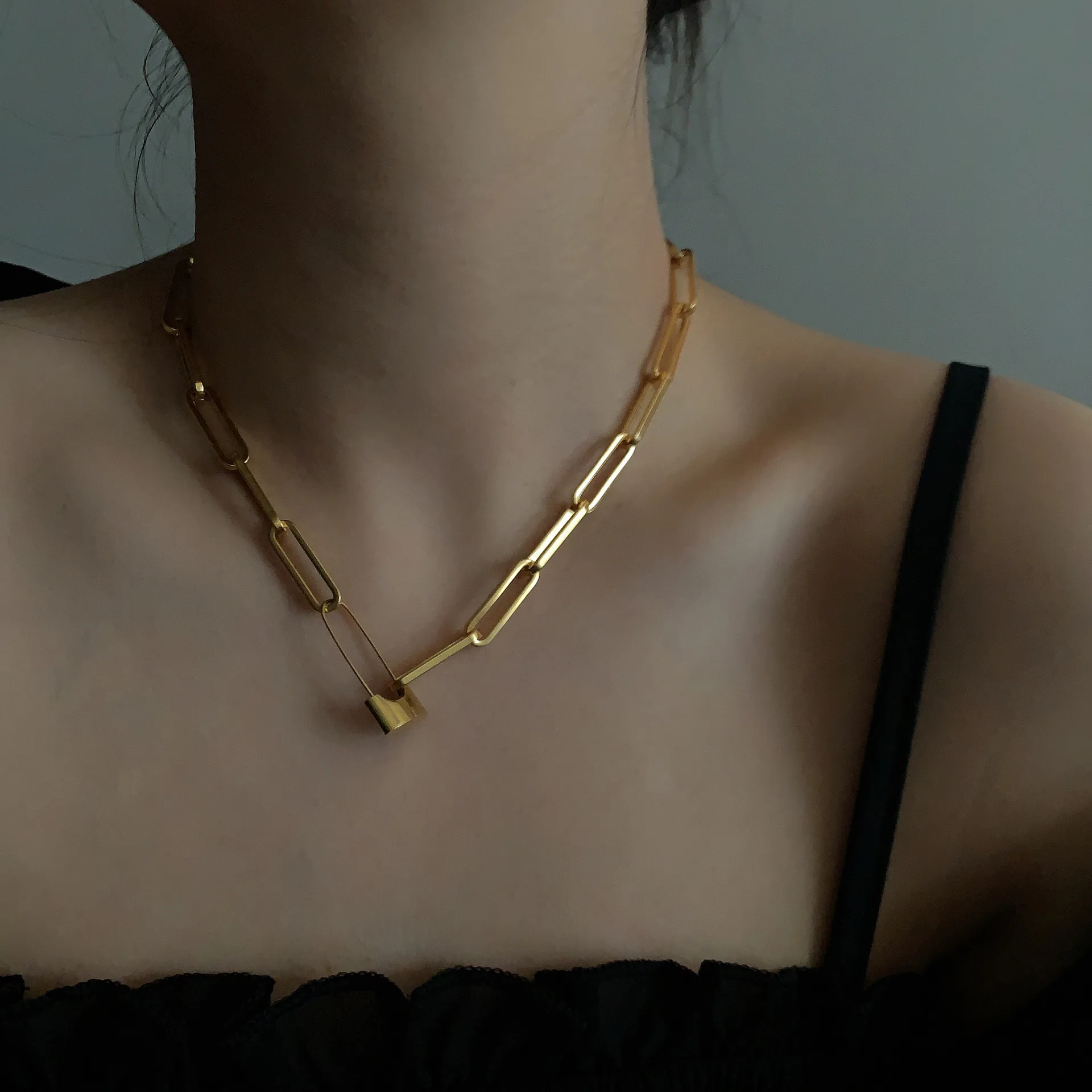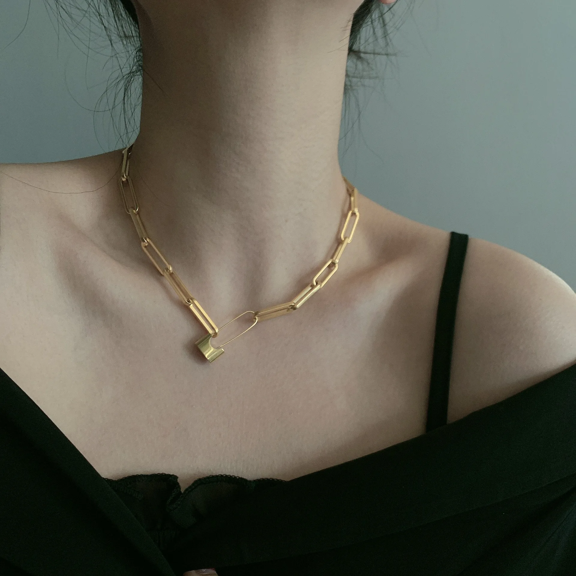 Stainless Steel Unique Design Lock Pin Chain Necklaces Minimalist Statement Delicate Chokers Women Simple Collar