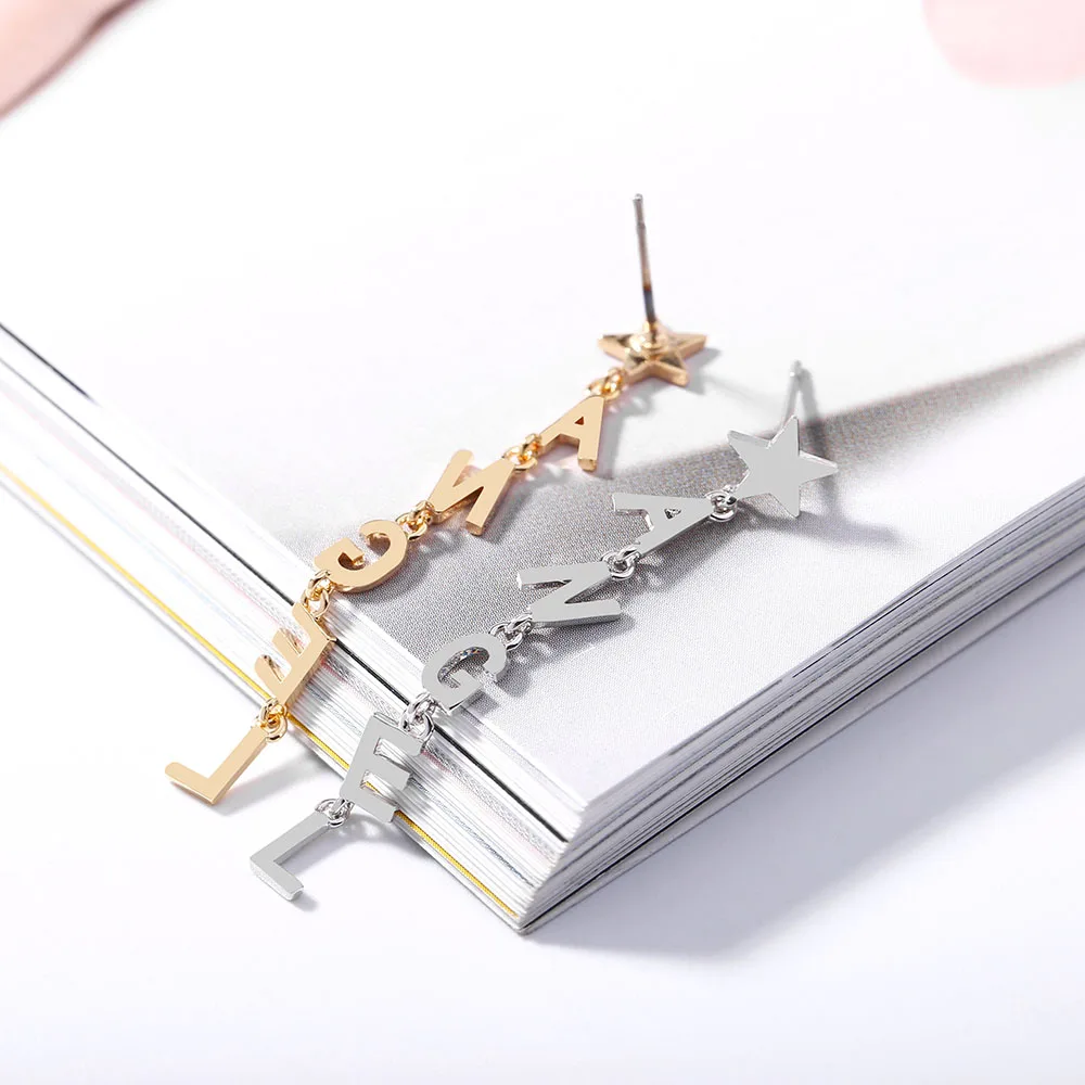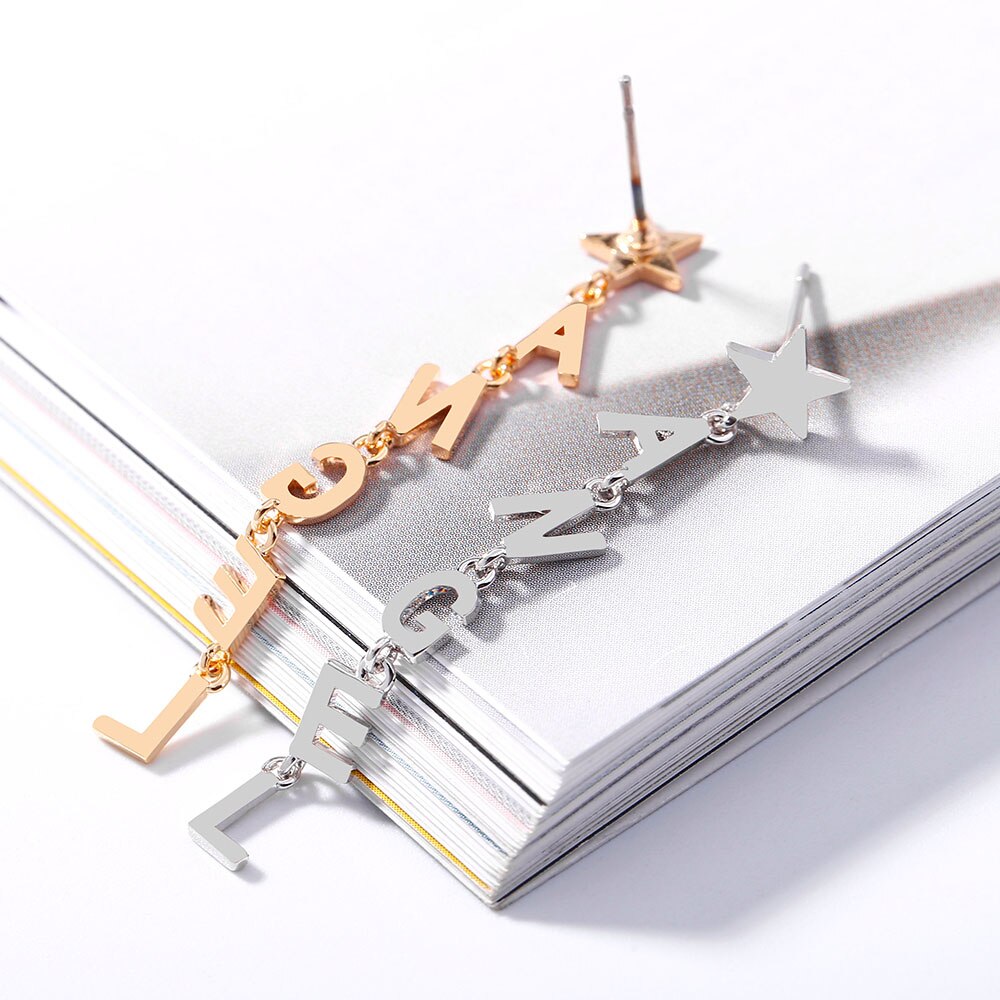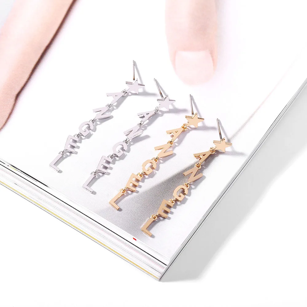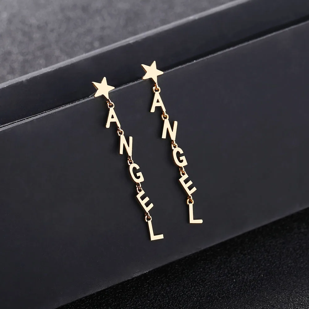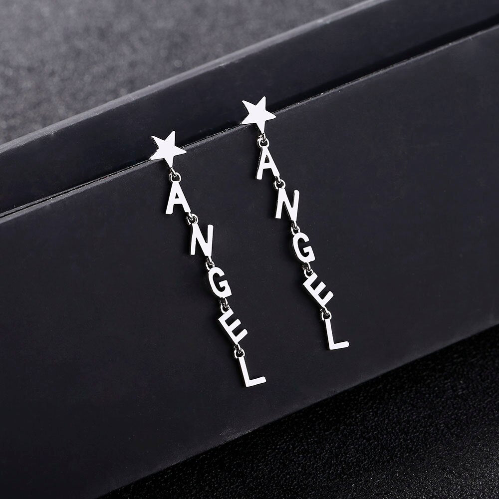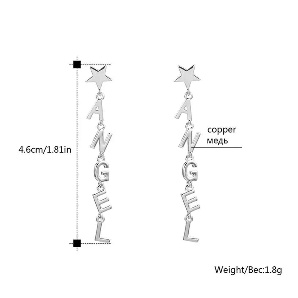 Star Angel Letters Long Drop Earrings For Girls Sexy Gold Copper Bohemia Statement Hanging Earring Set Bijoux