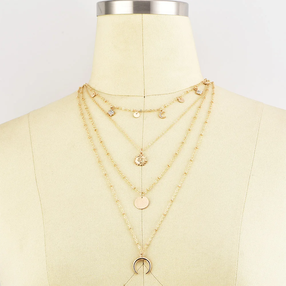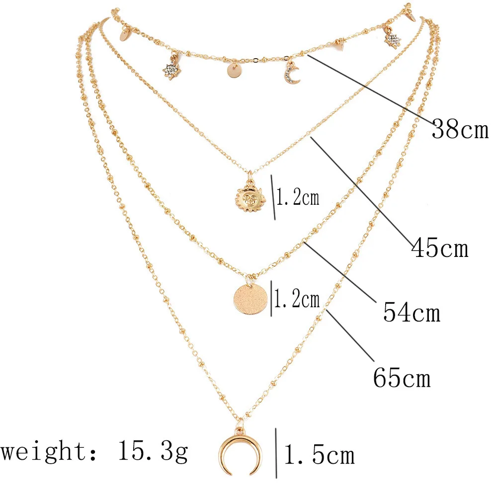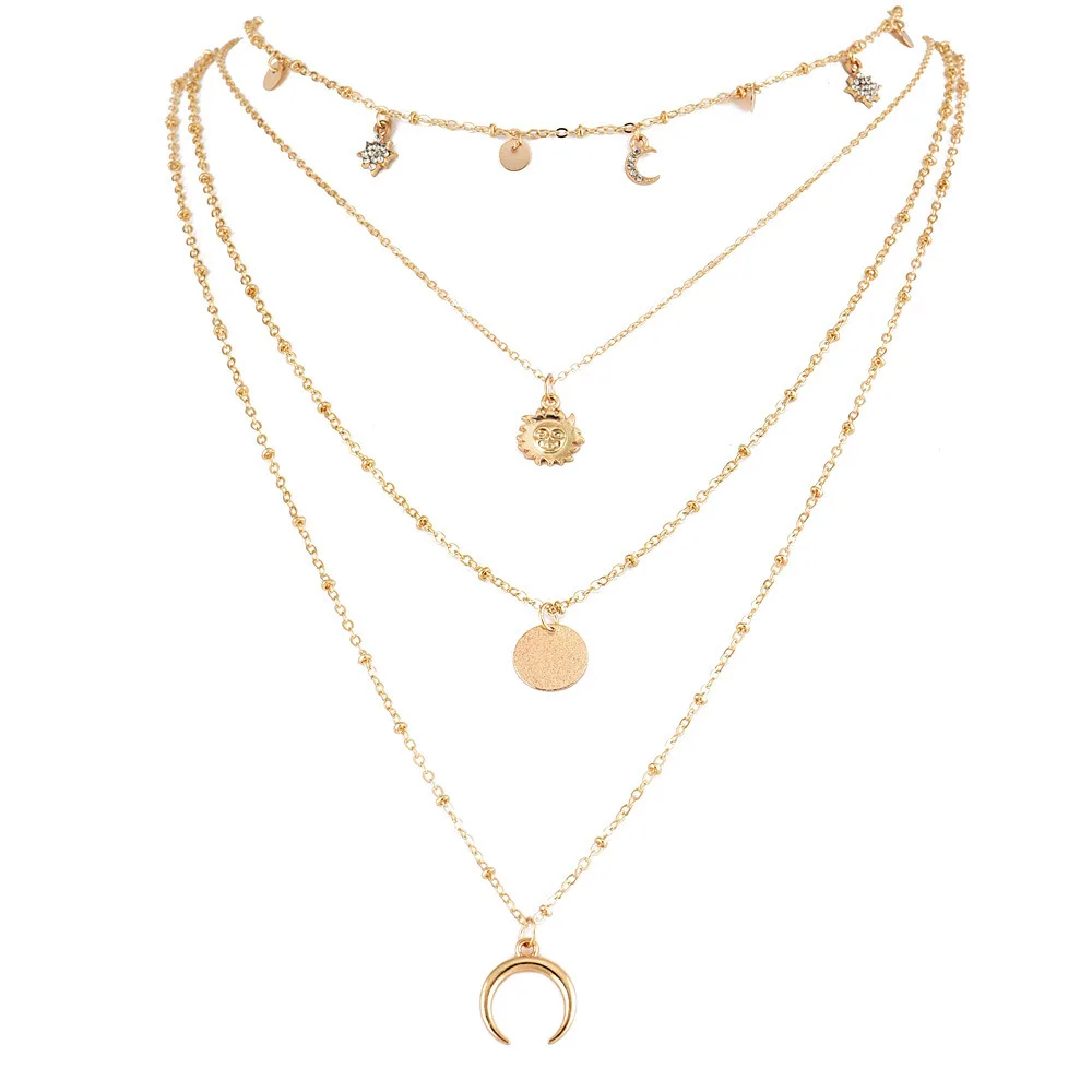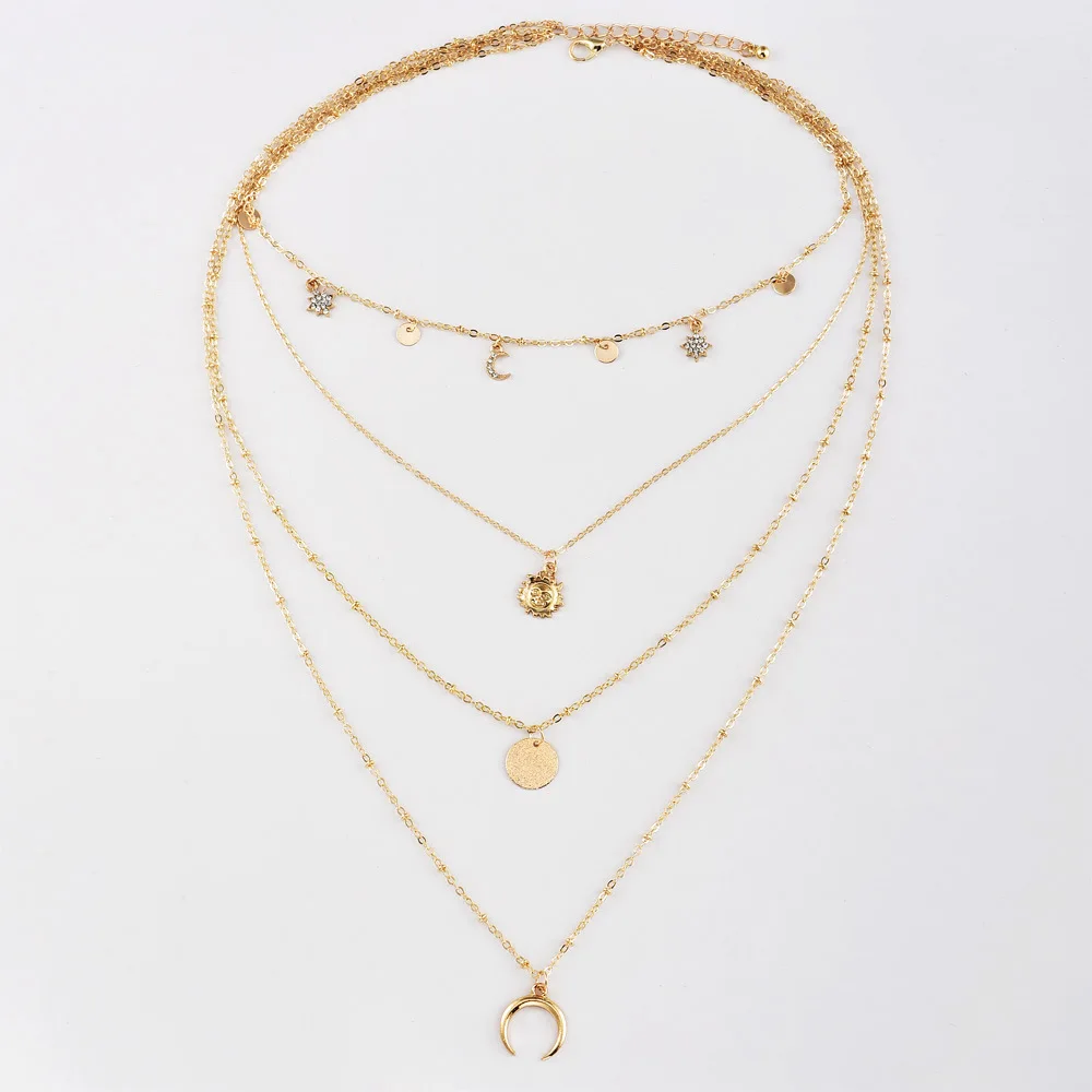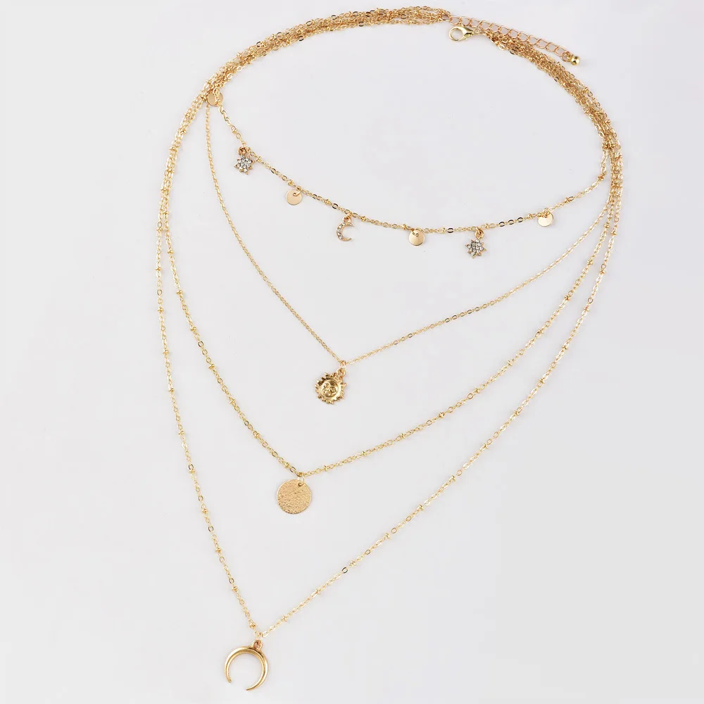 Star Necklace Pendant Clavicle Necklace Chain Vintage Star Crescent Four -layer Necklace Jewelry Women's Neck Chain цепочка
