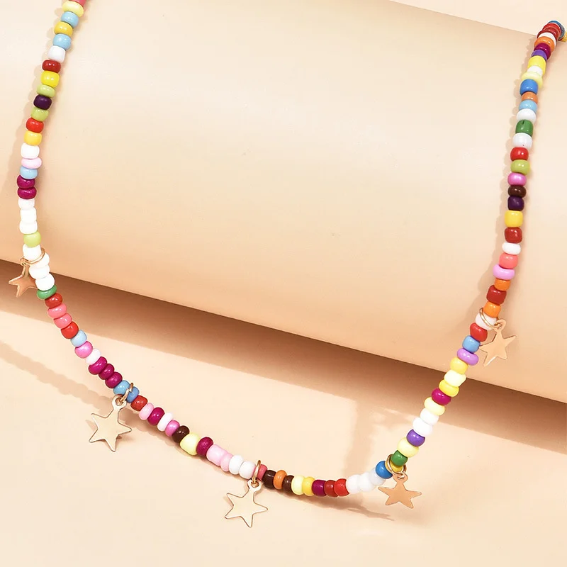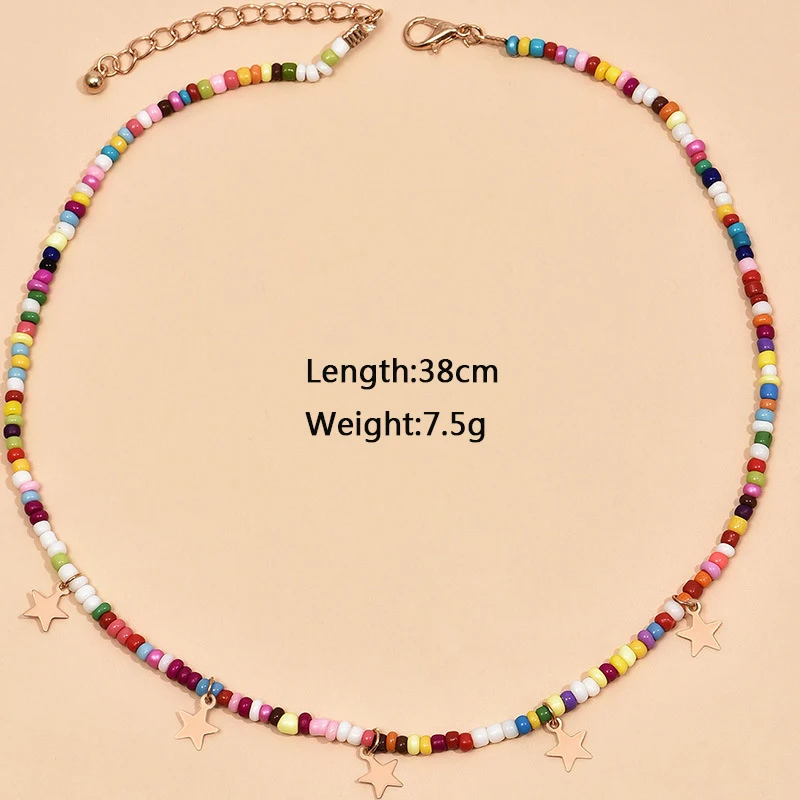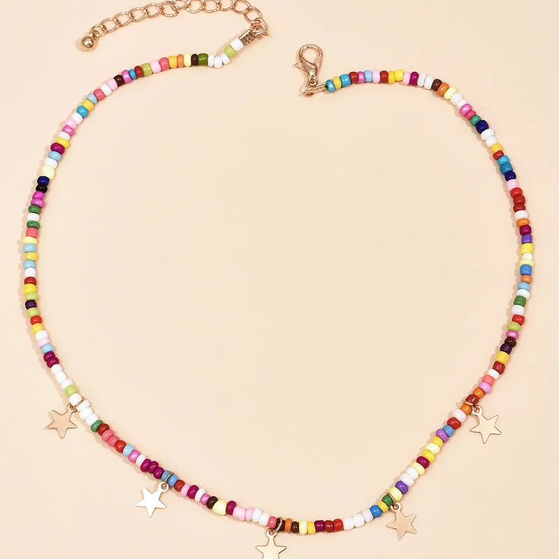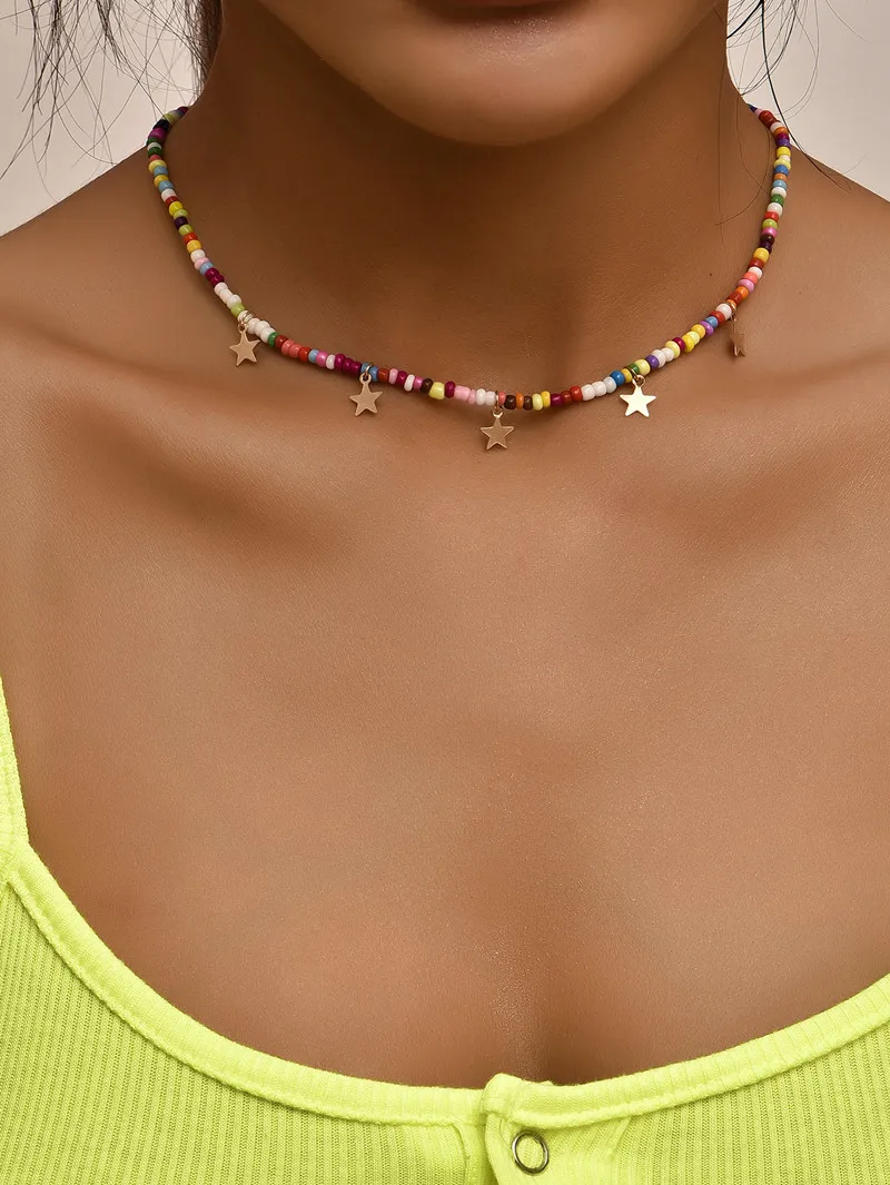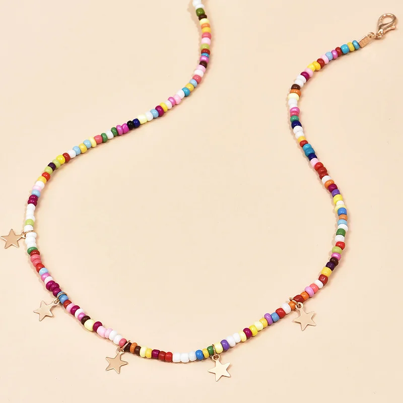 Star Pendants Chokers Bohemian Short Chain Necklaces for Women Multi-colored Beads Collar Perosnality za Neck Jewelry