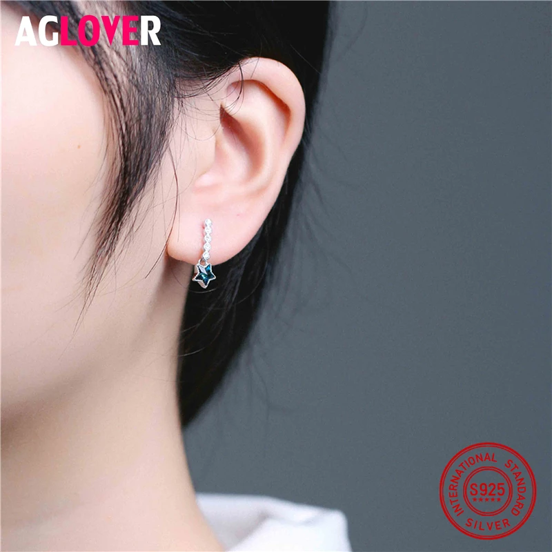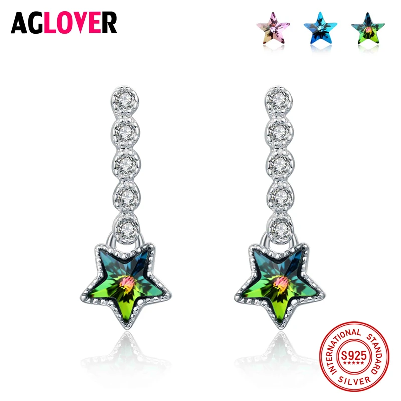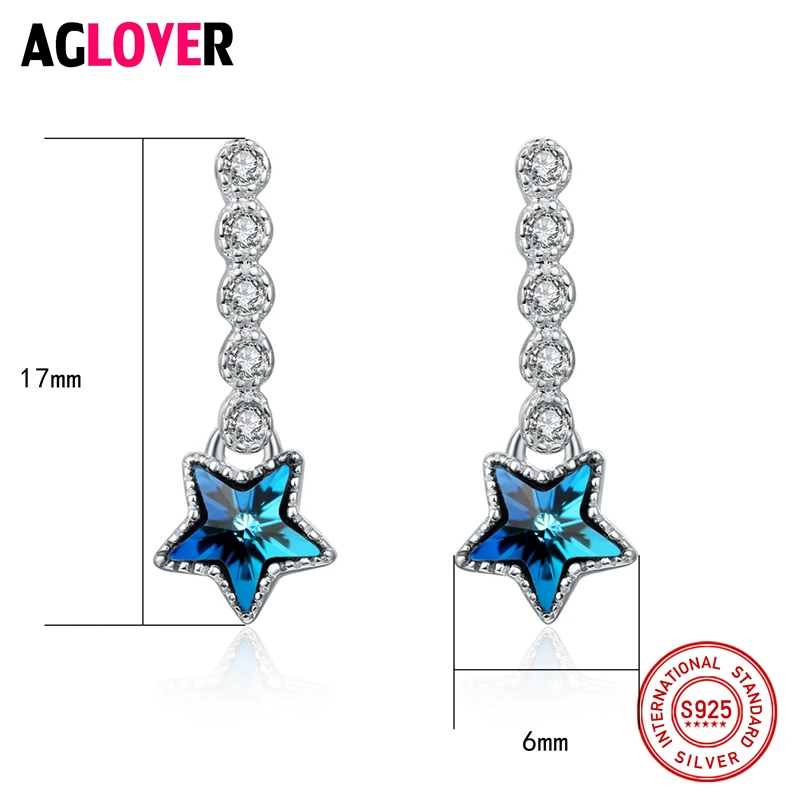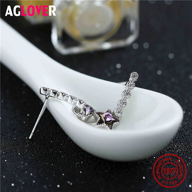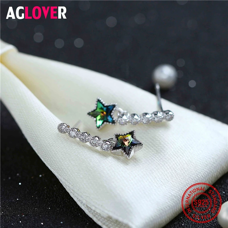 Star Shine Clear CZ 925 Sterling Silver Star Push-Back Women Stud Earrings Fashion Glamour Austrian Crystal Jewelry