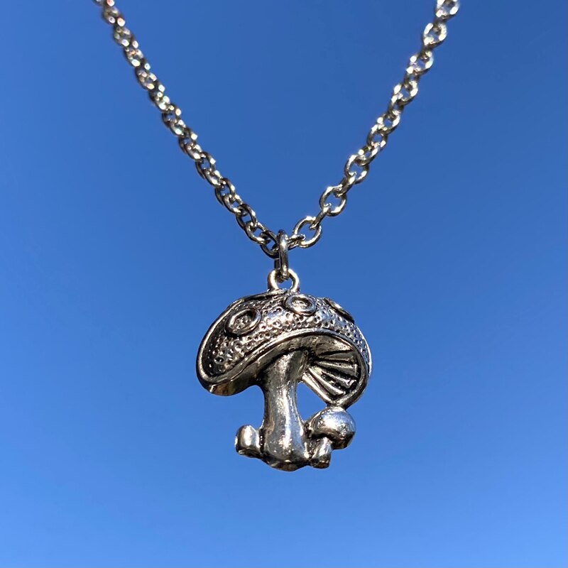 Statement Magic Mushroom Pendant Necklace For Women Bead Chain Choker Jewelry Punk Goth Gothic Wicca Accessories