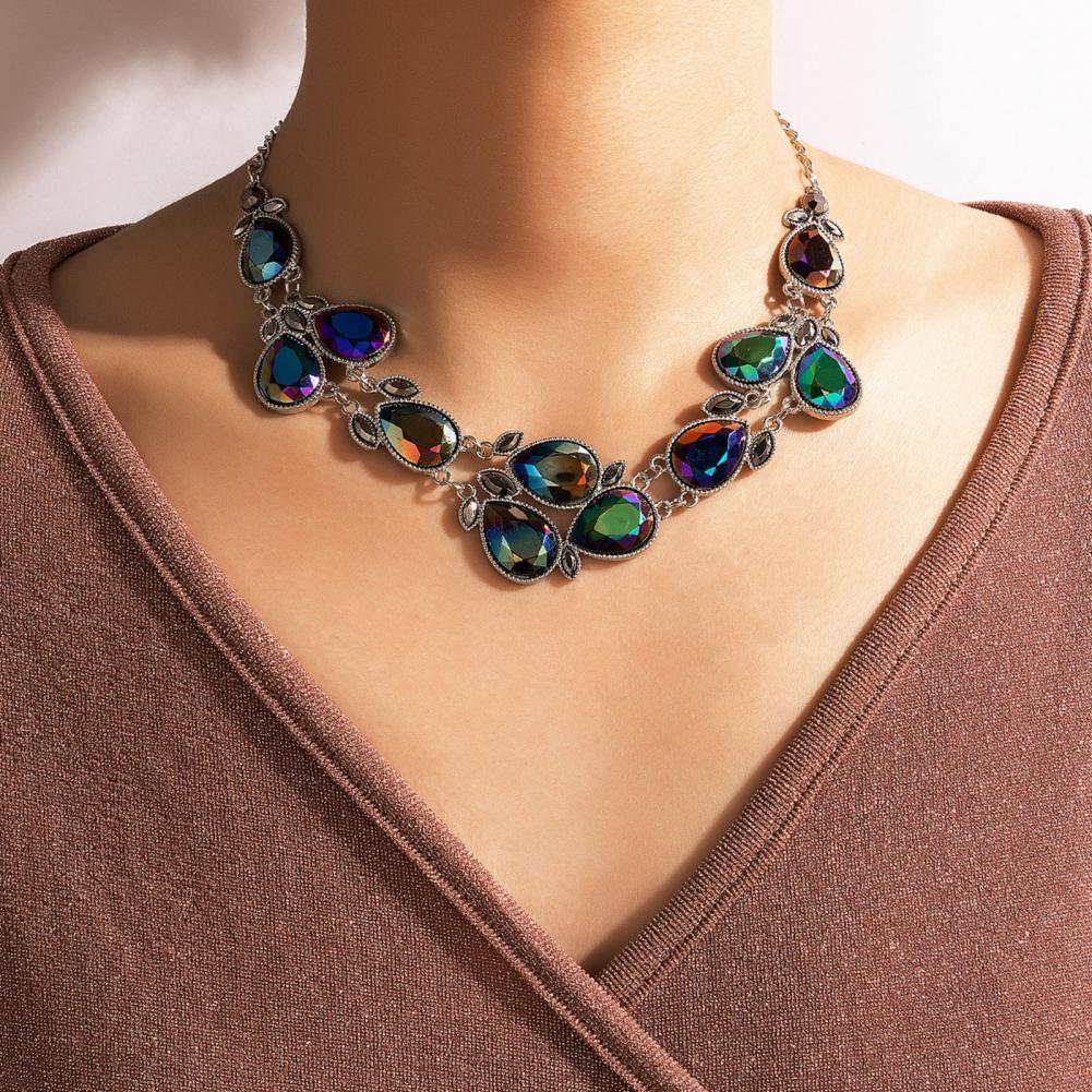Statement Necklace Attractive Choker Necklace Geometric Faux Crystal Neck Chain Link