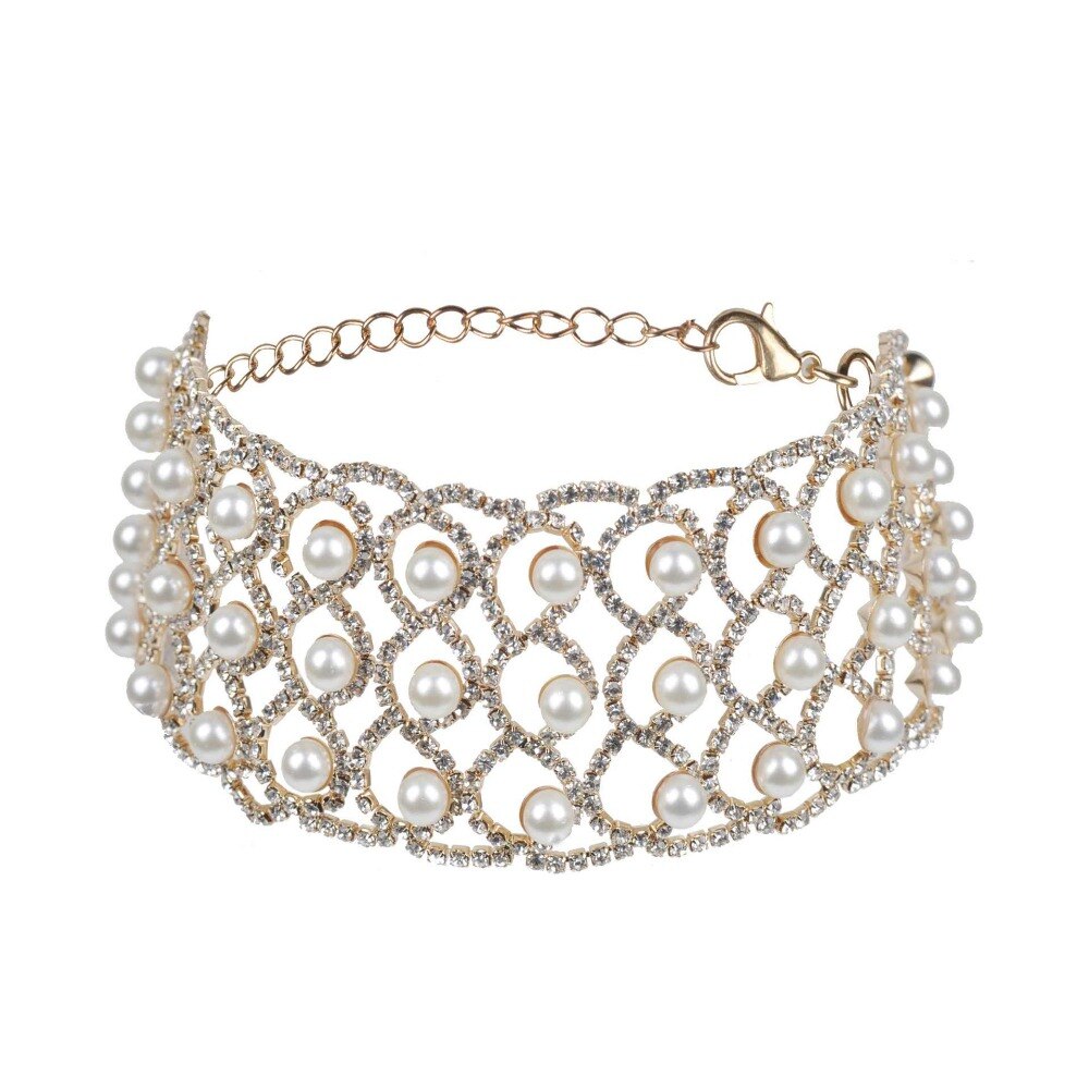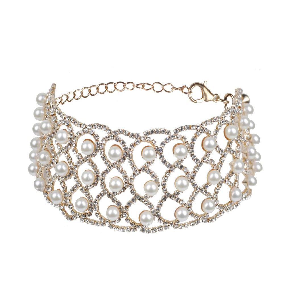 Statement Necklace Big Rhinestone Choker maxi crystal necklace Simulated Pearl Party Collier Femme Jewelry Collares
