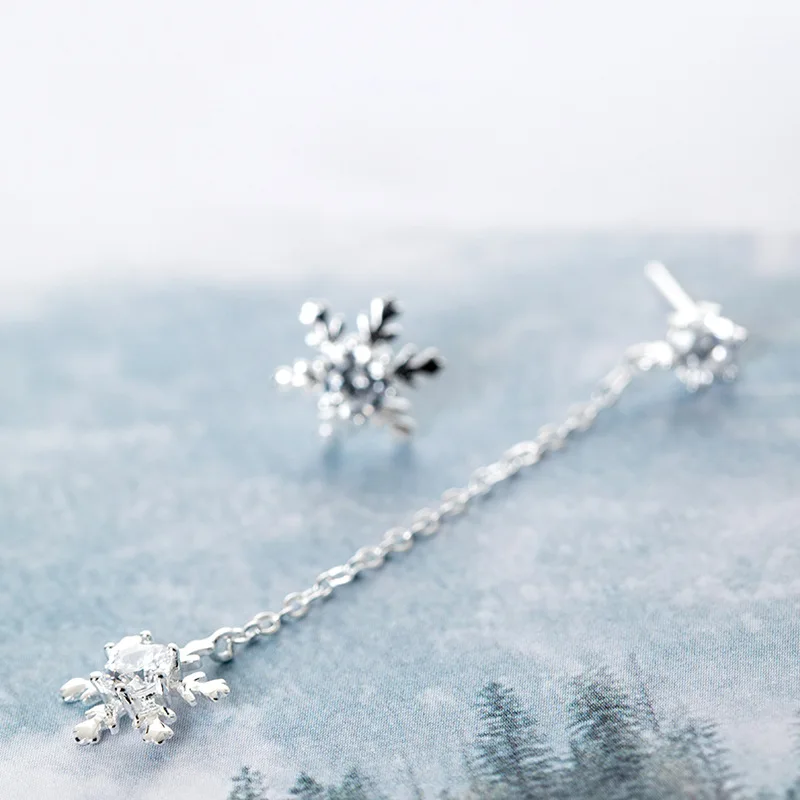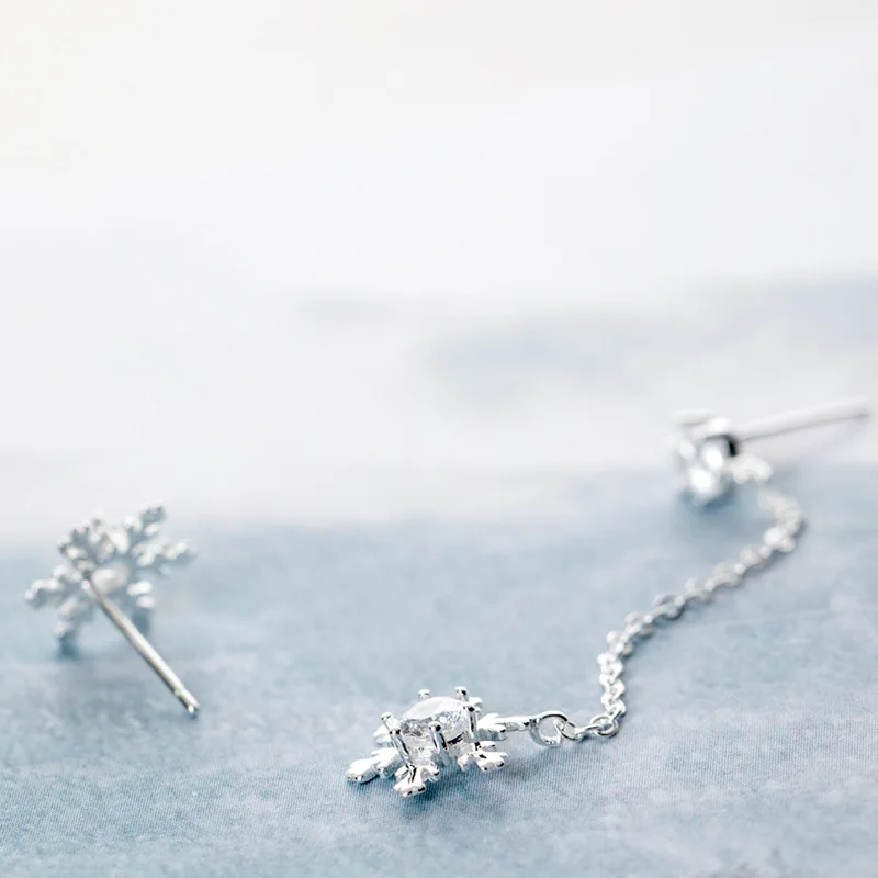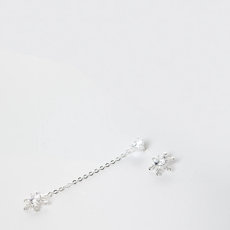 Sterling 925 silver zircon asymmetric snowflake earrings simple elegant trendy design stud earrings for women fashion jewelry
