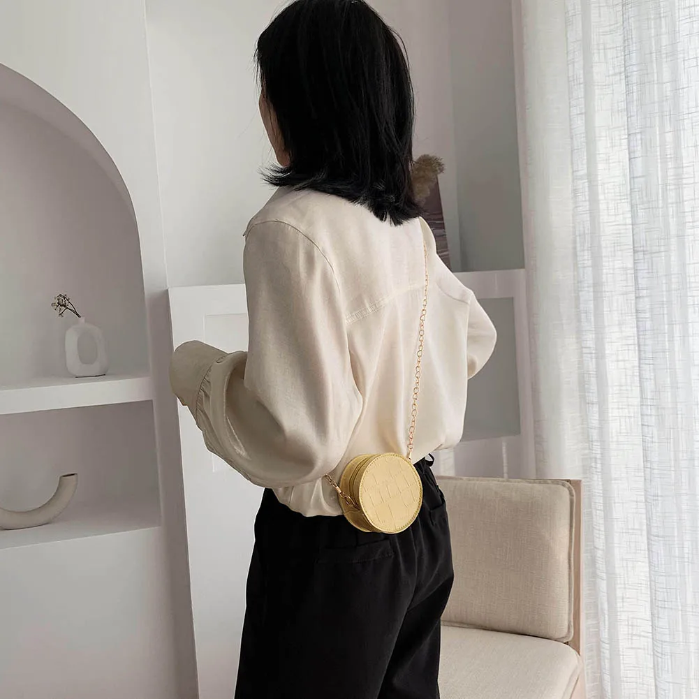 Stone Pattern Crossbody Tote Bags Women Round Small Leather Shoulder Bag Chain Female Elegant Crossbody Shoulder Supply