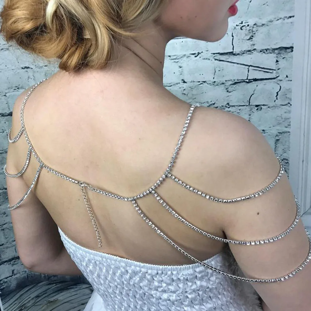 Stonefans Rhinestone Jewelry Bridal Shoulder Chain Necklace for Women Handmade Shoulder Jewelry Wedding Statement Necklace Chain