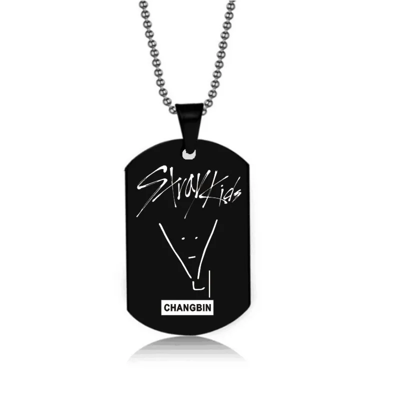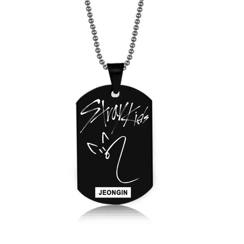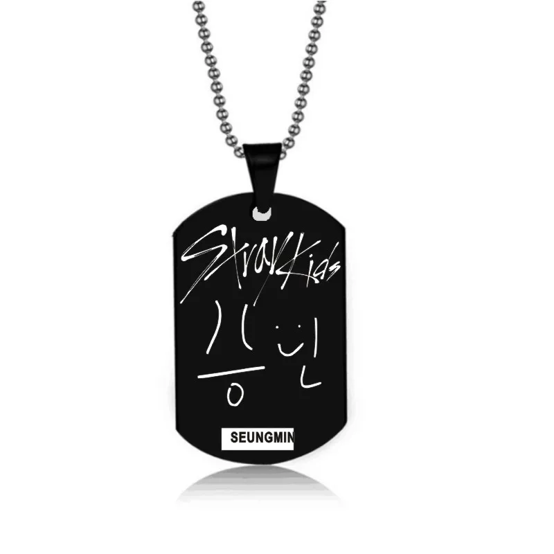 Stray Kids Signature Pendant Birthday Name Stainless Steel Pendant Necklace Black Metal Tag Necklaces for Women Men Jewelry