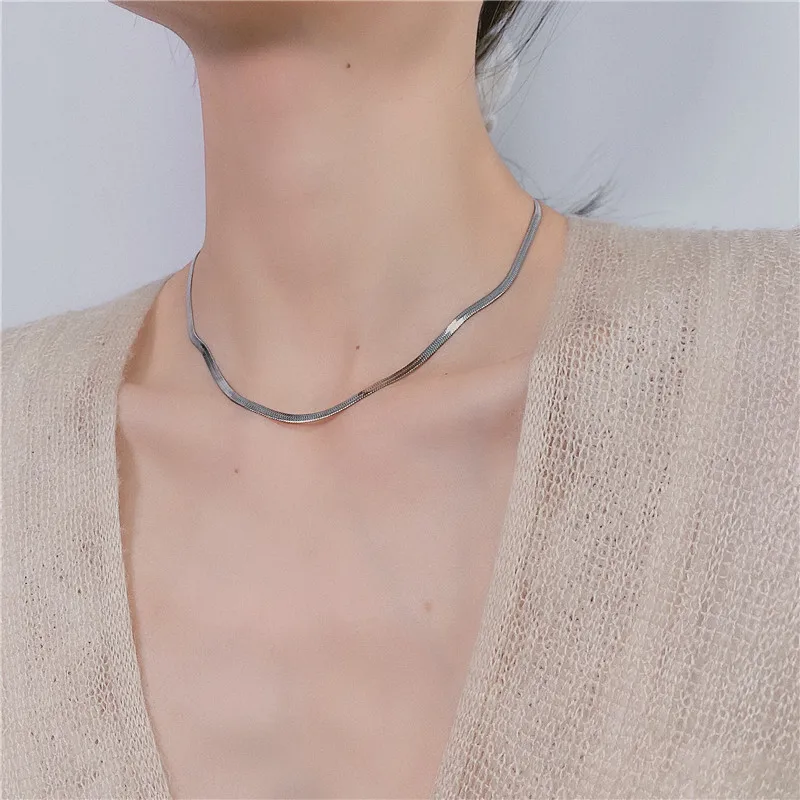 Street Pats Temperament All Match Love Cold Wind Extremely Simple Titanium Steel Snake Bone Chain Clavicle Chain Necklace Female
