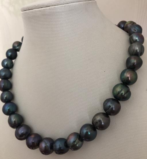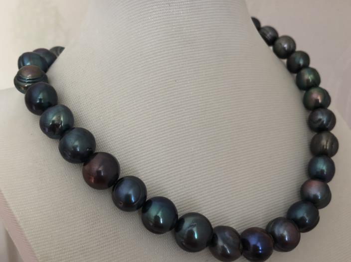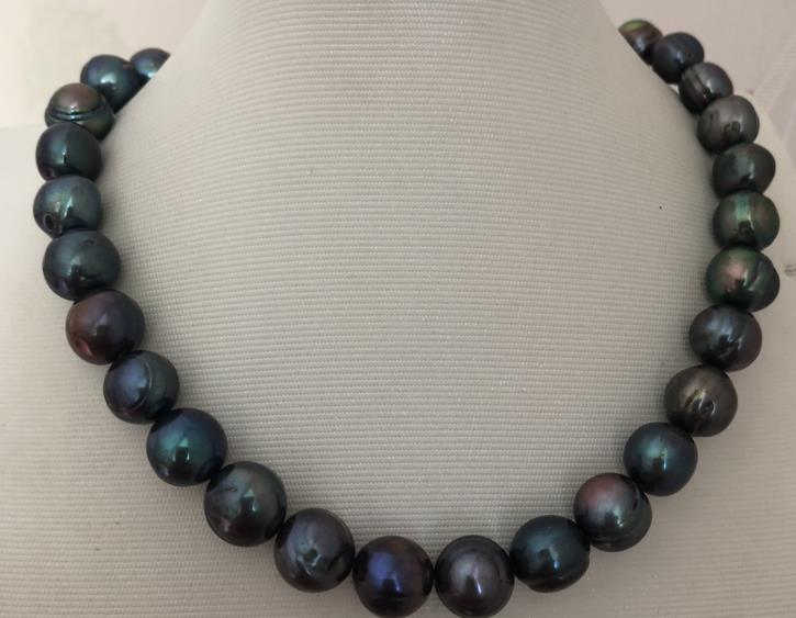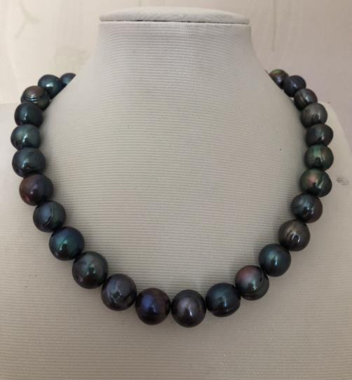 stunning 10-12mm tahitian baroque black green pearl necklace 18"925s