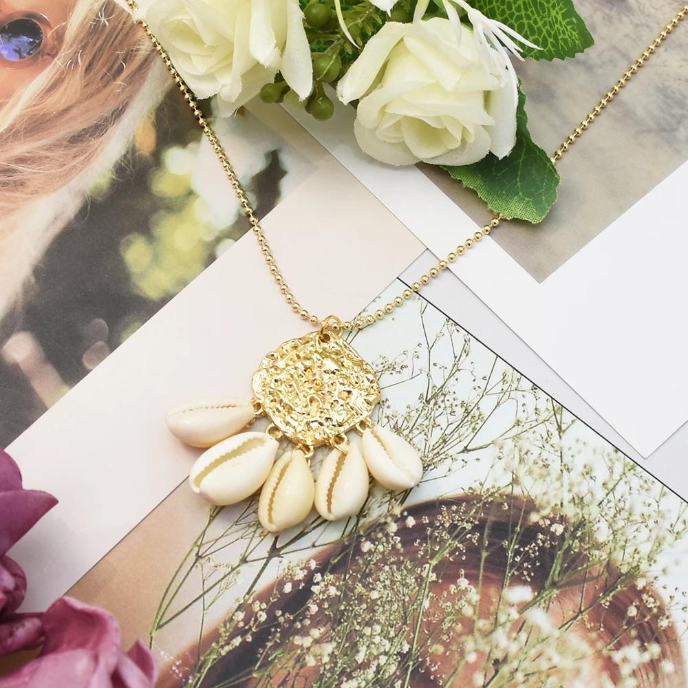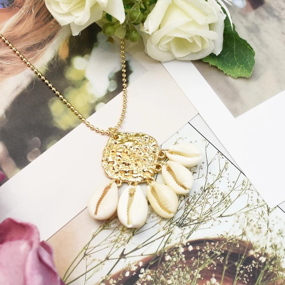 Summer Natural Sea Shell Bib Long Pendant Necklace Bead Gold Link Chain Statement Necklace Bohemia Ethnic Beach Jewelry