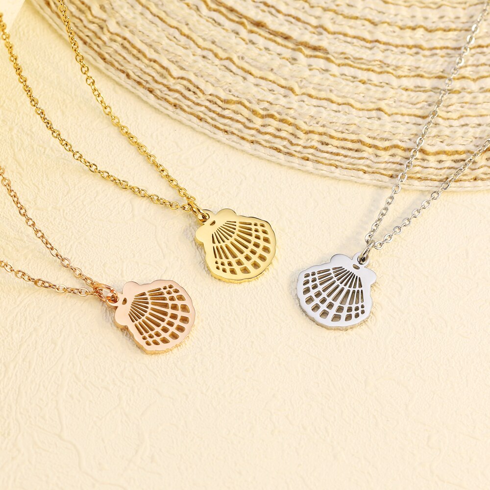 Summer Ocean Series Scallop Shell Conch Hippocampus Starfish Coconut Tree Pendent For Women Girl Dainty Chain Necklaces Jewelry