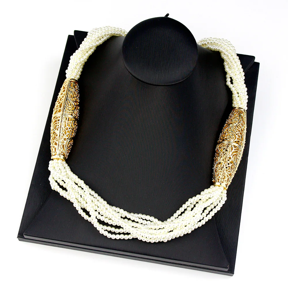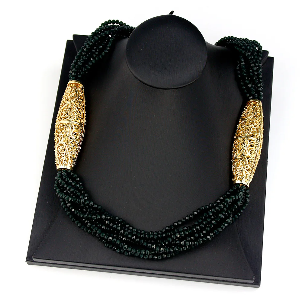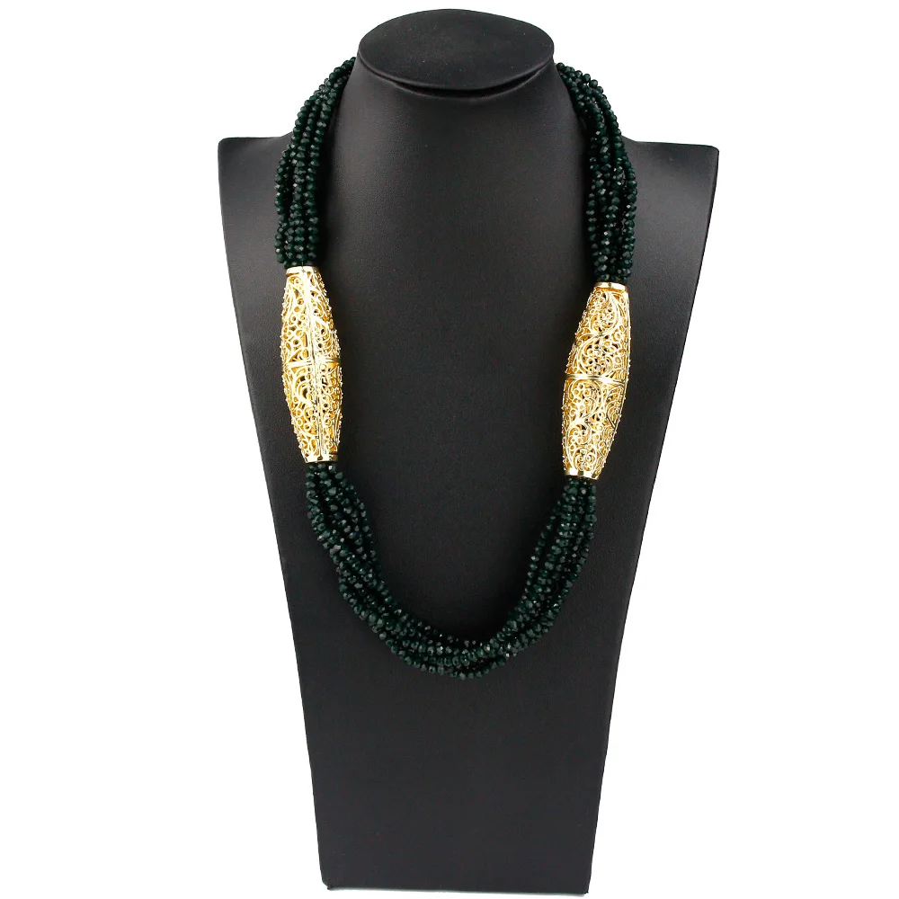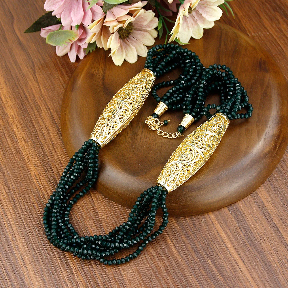 Sunspicems 2021 Gold Color Crystal Beaded Necklace For Women Morocco Wedding Jewelry Arab Handmade Natural Stone Choker Bijoux