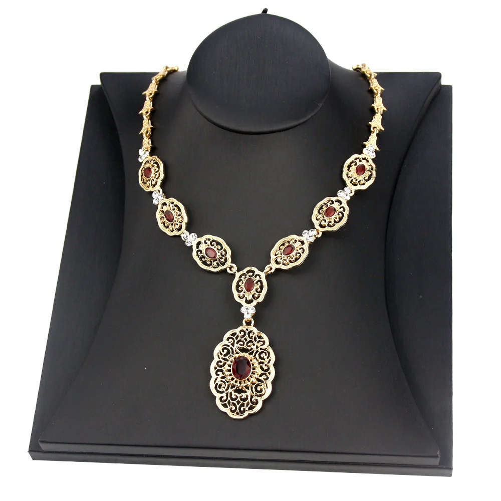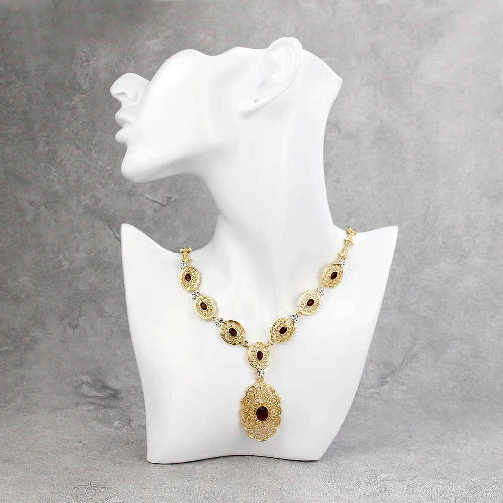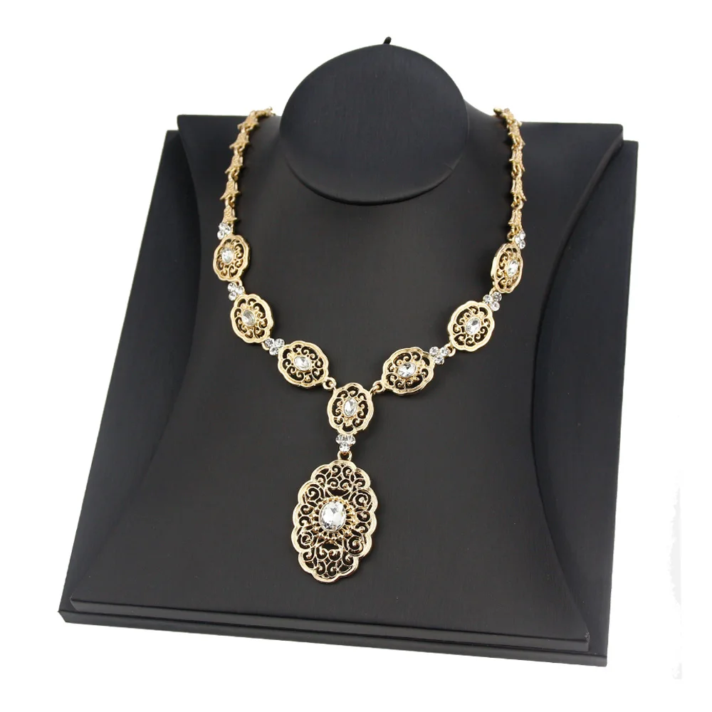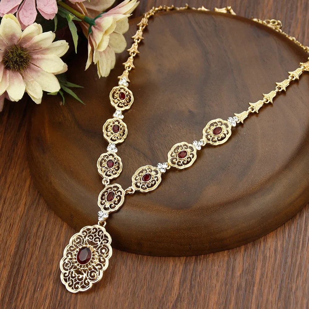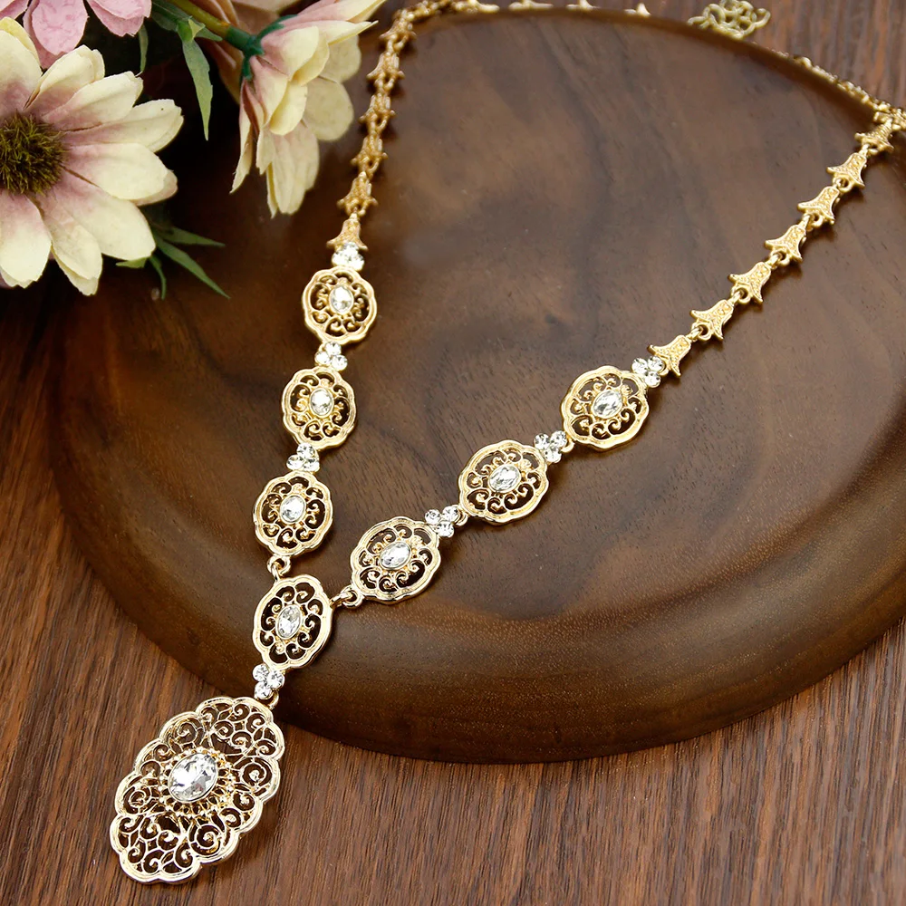 Sunspicems Elegent Morocco Algeria Women Necklace Gold Plated Colorful Crystal Ethnic Wedding Jewelry Round Arabic Pattern Chain