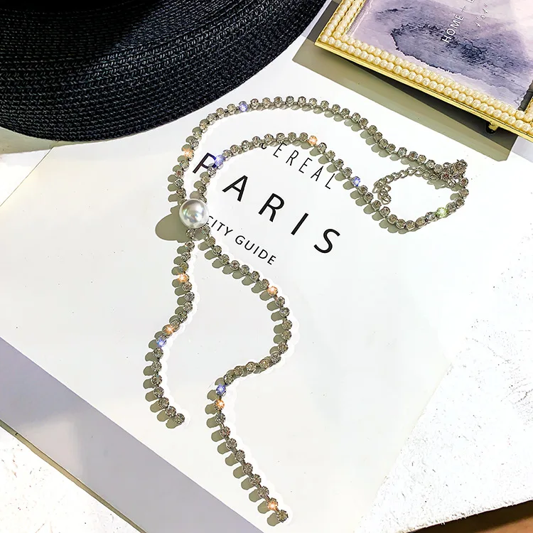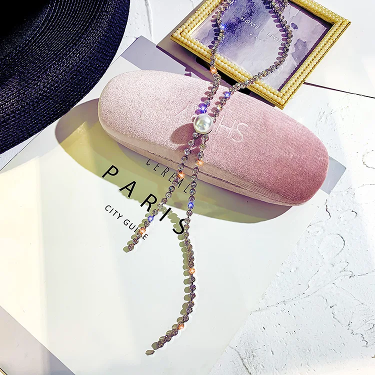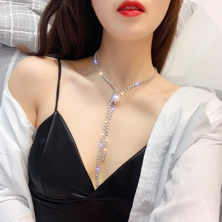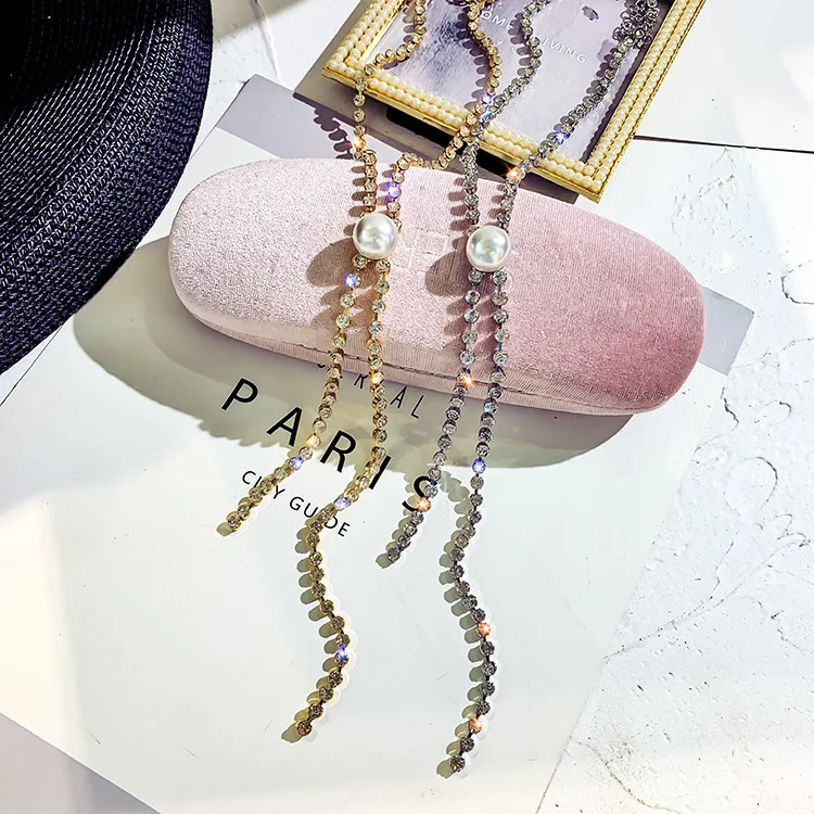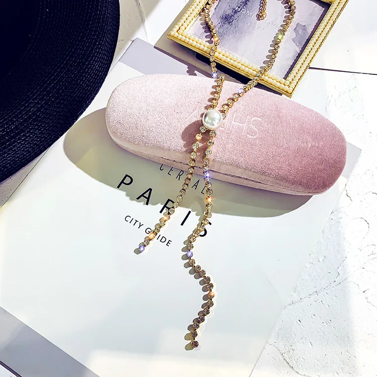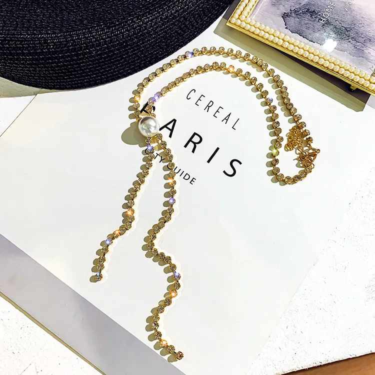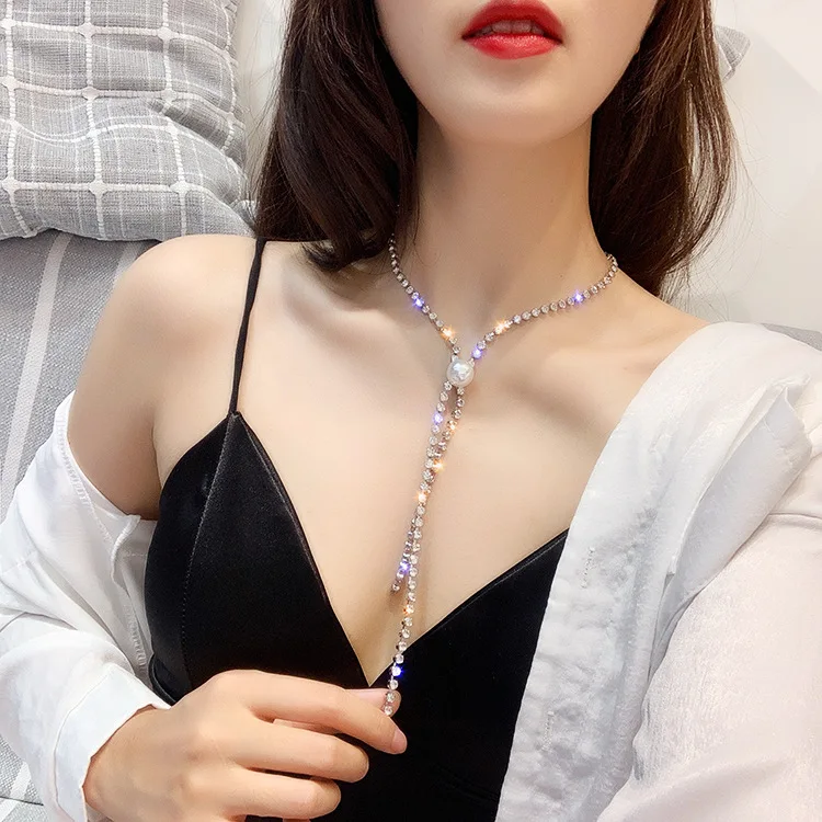 Super Pearl tassels Shining Rhinestone chokers necklaces for women simple Office career Jewellery crystal 1pcs