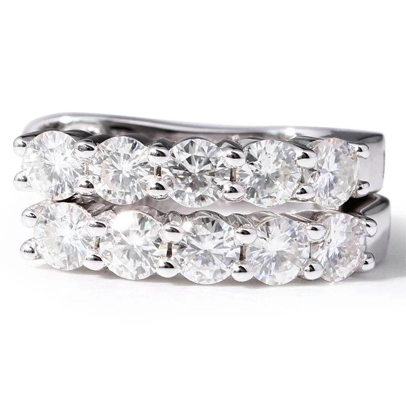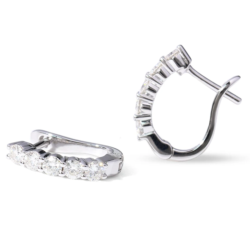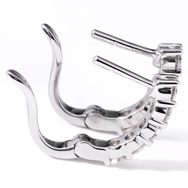 Moissanite Hoop Earrings 14k White Gold Huggie Type Hoop Earrings with 1 CTW Each 0.1CT 3MM FGH Moissanite U Hoop Earrings