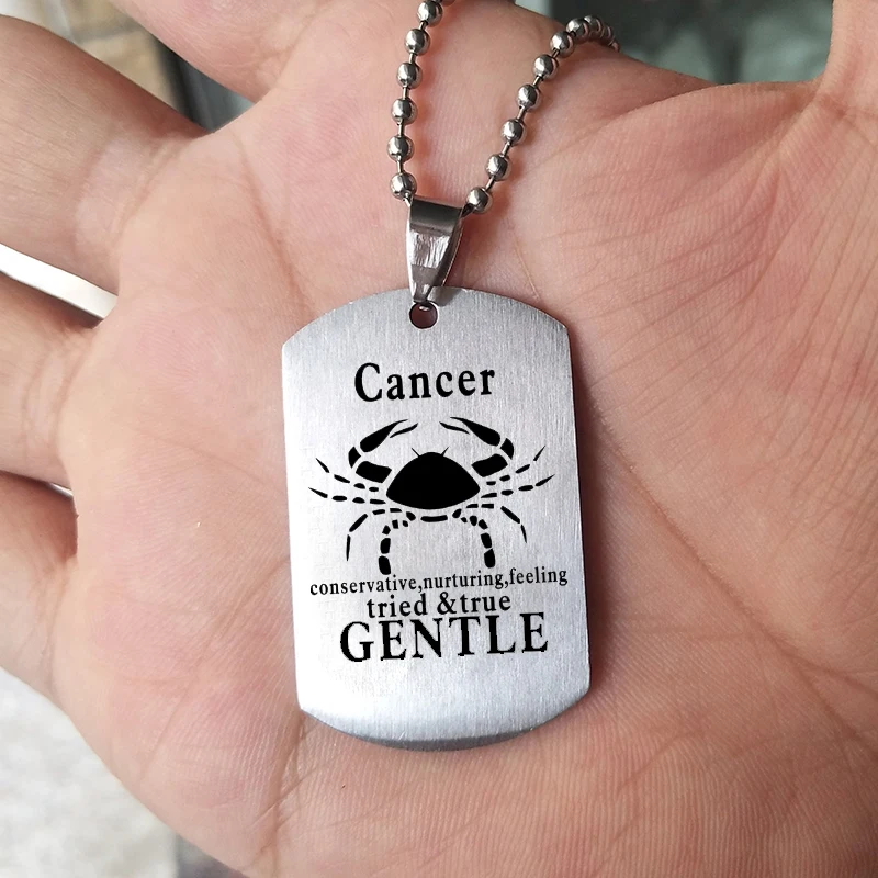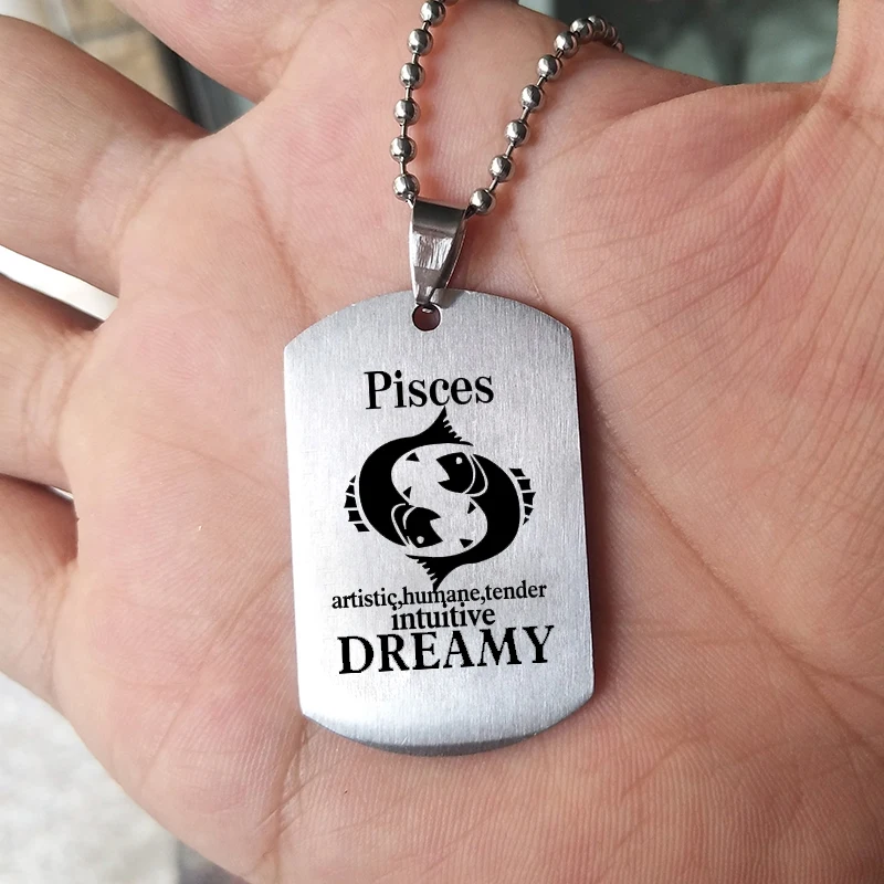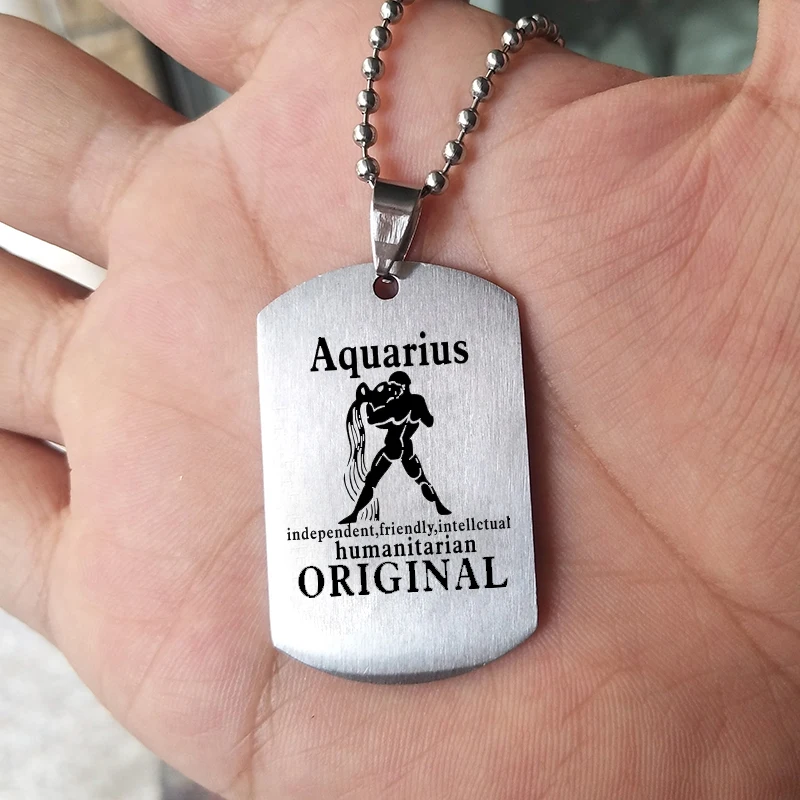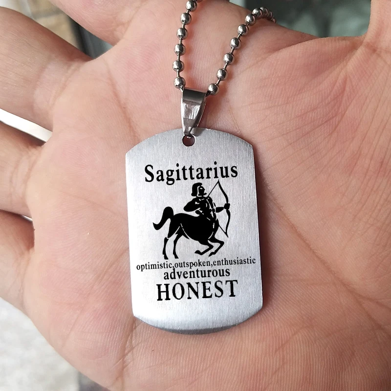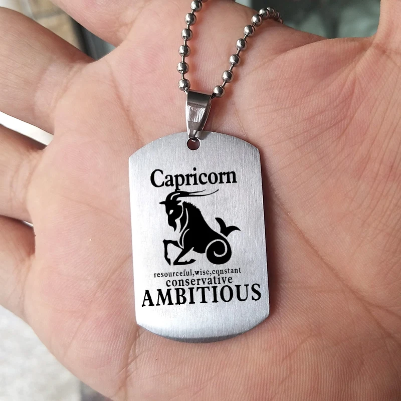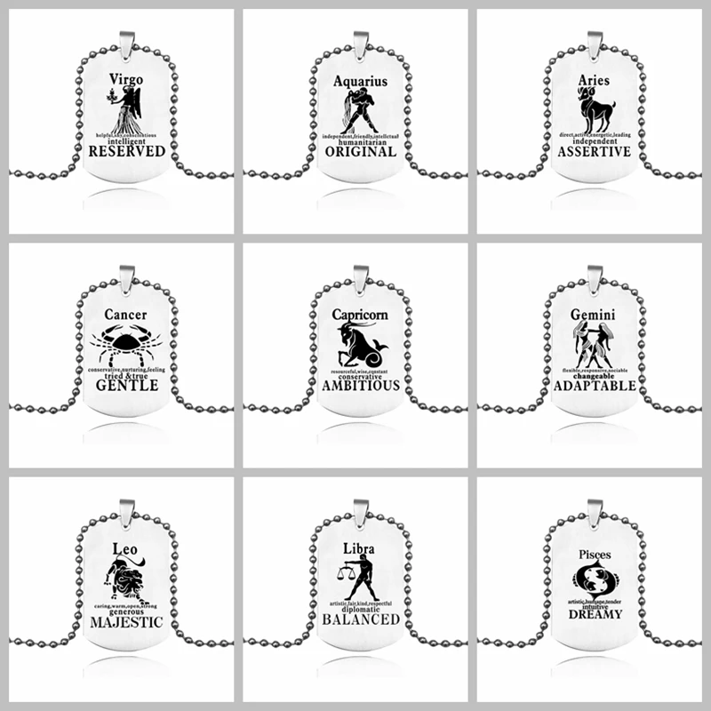 Suteyi Stainless Steel Zodiac Sign Tag Necklaces For Women Men Aries/Taurus 12 Constellation Pendants Necklace