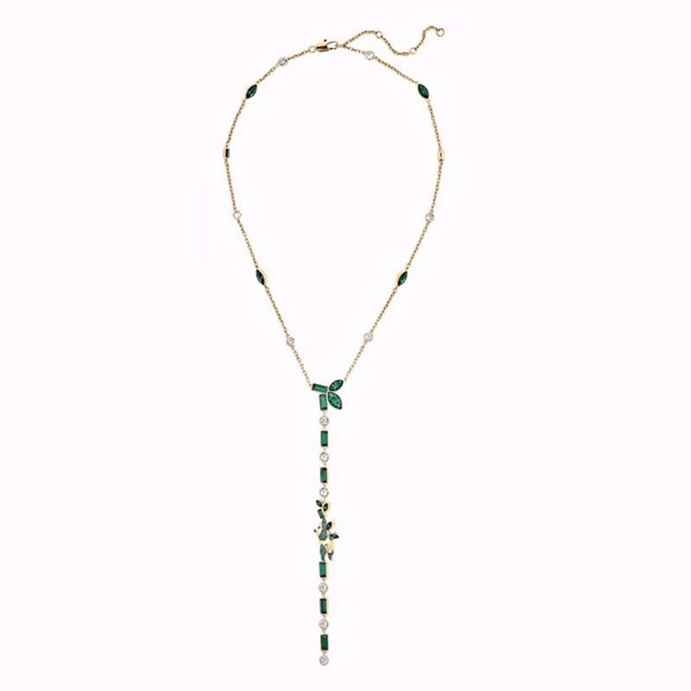 SWA 2021 Jewelry Charm Bamboo Hollow Green Leaf Crystal Pendant Necklace Women's Gift Christmas Gifts