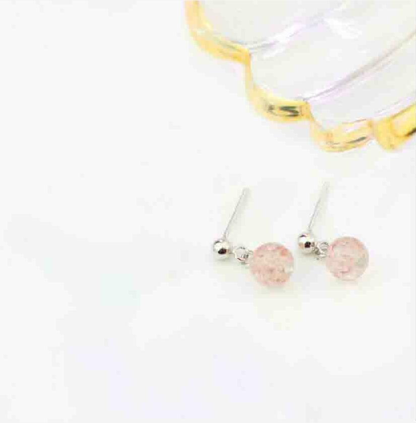 Sweet blue pink strawberry crystal earrings in 925 sterling silver. J0321