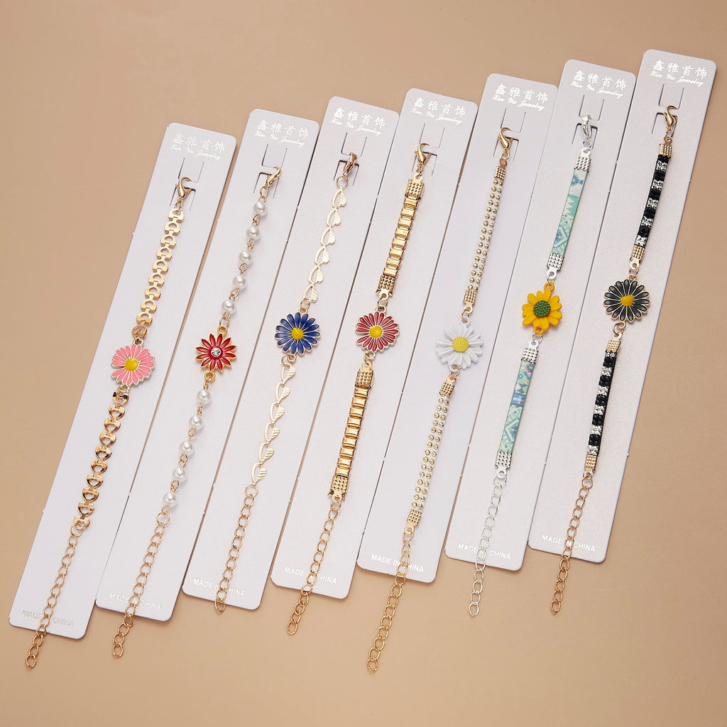 Sweet Daisy Flower Bracelets Personality Minimalist Flowers Pearl Bracelet Women Party Banquet Statement Jewelry Gift