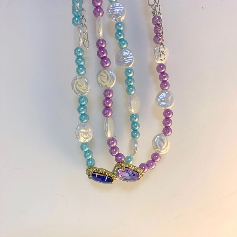 Sweet Irregular Geometric Pearl Heart Crystal Rhinestone Pendant Shining Necklace For Women Jewelry Bride Wedding