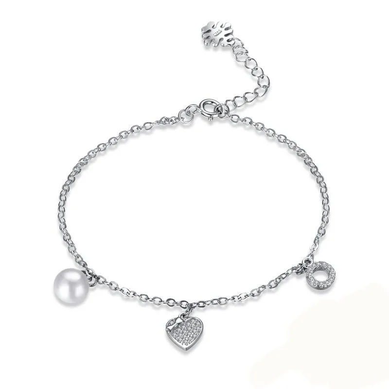 Sweet Pearl Heart Circle Pendant CZ 925 Bracelet