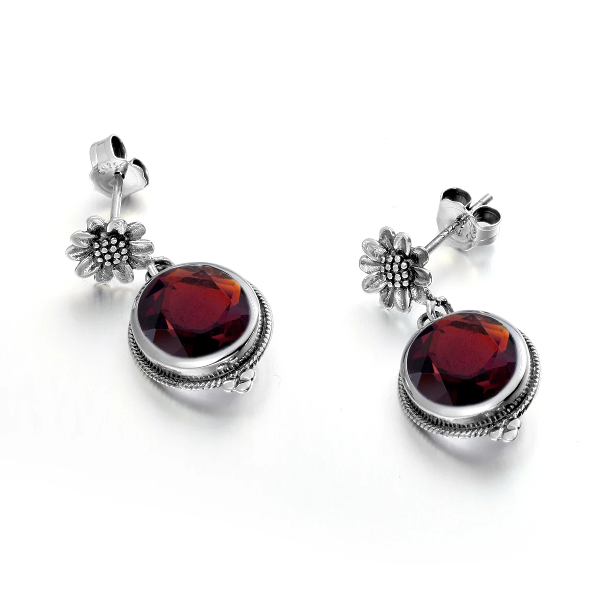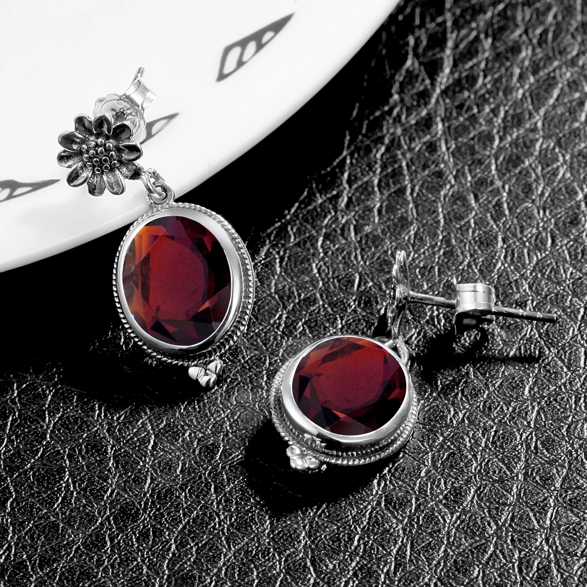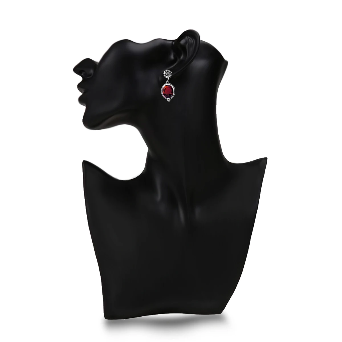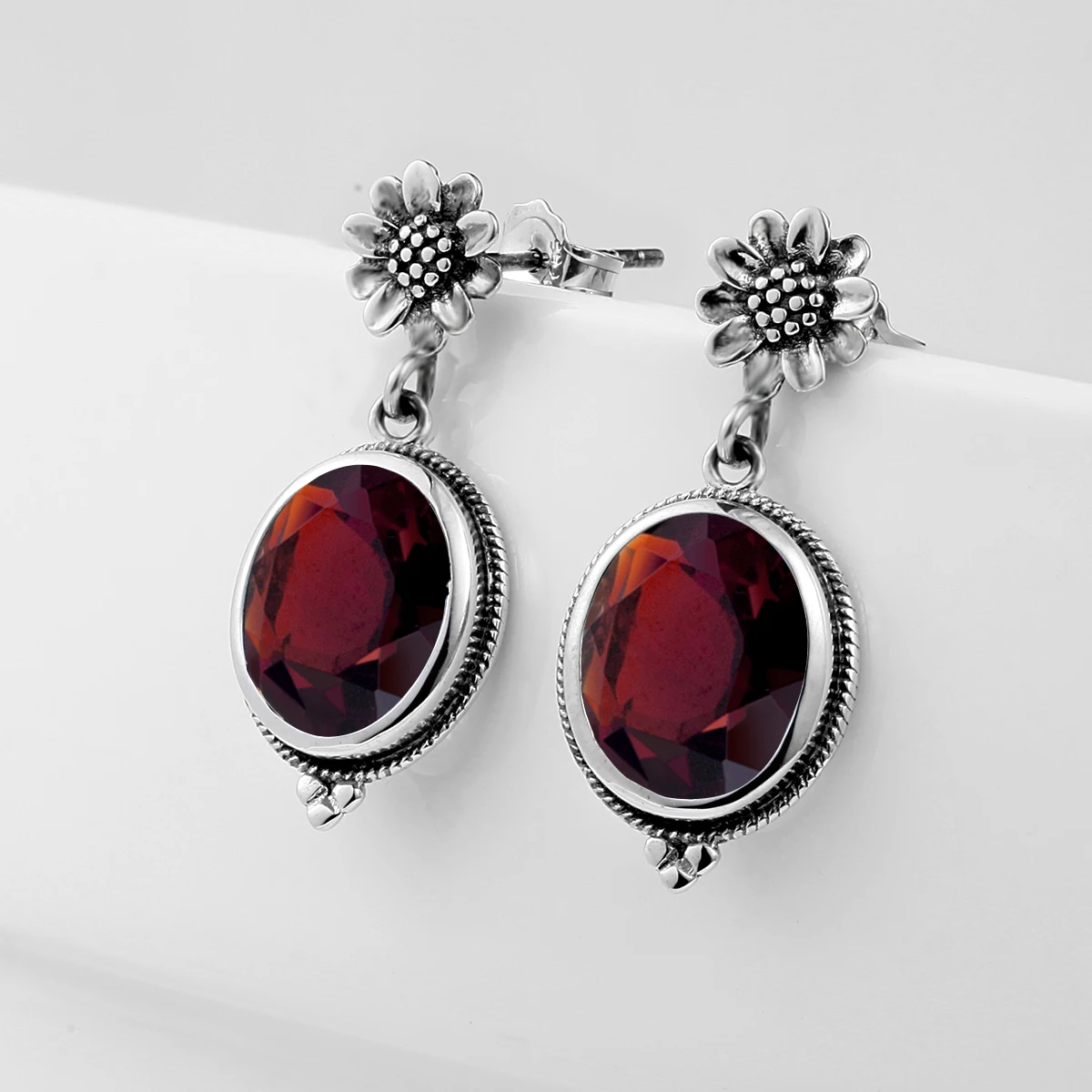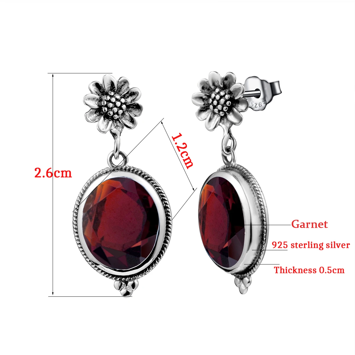 925 Sterling Silver Vintage Rose Earrings With Garnet Big Oval Hanging Earrings For Bridal Brincos Wedding Jewelry