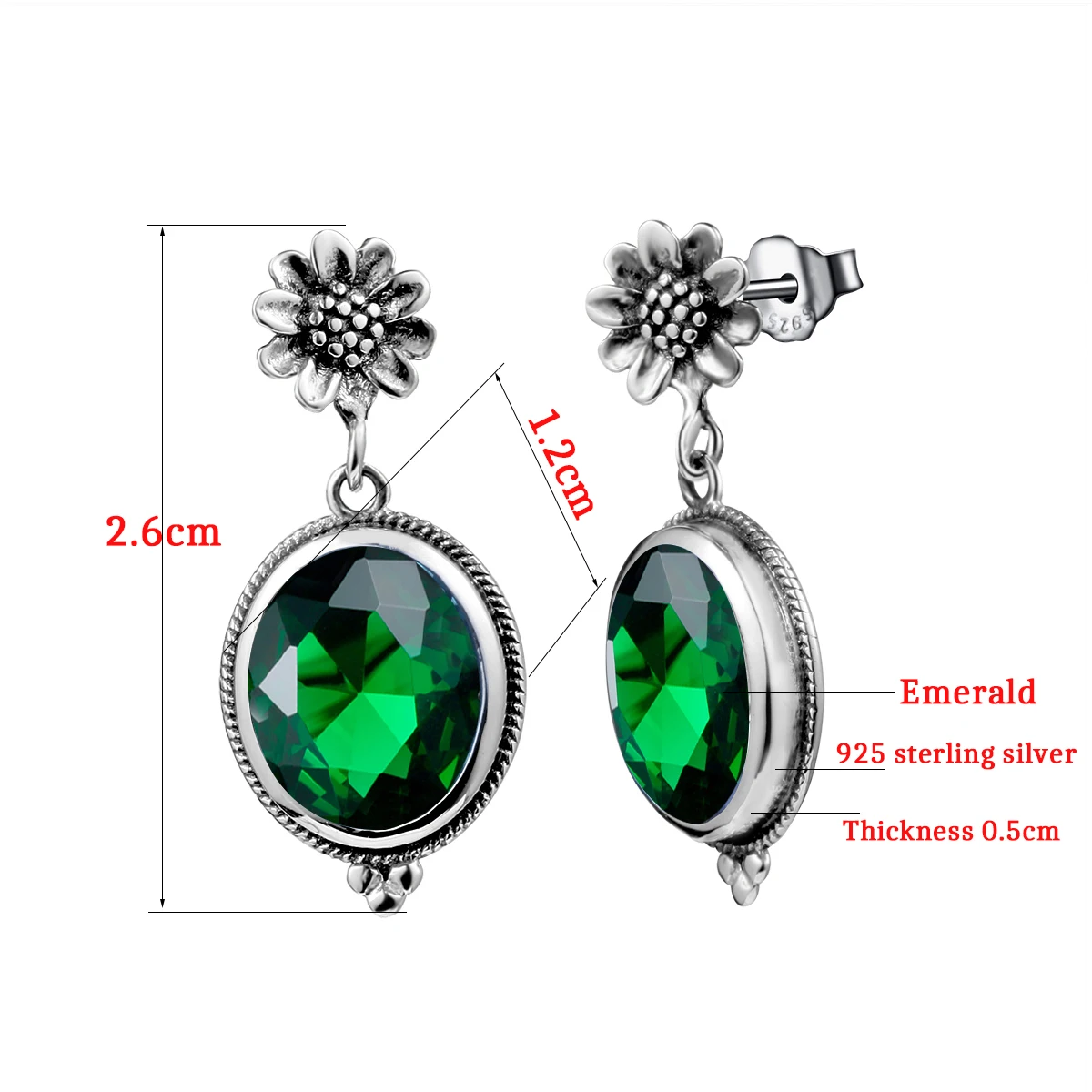 Greek Bohemia Green Flower Emerald Dangle Earrings Women Solid 925 Sterling Silver Earring Fine Jewelry M Birthstone