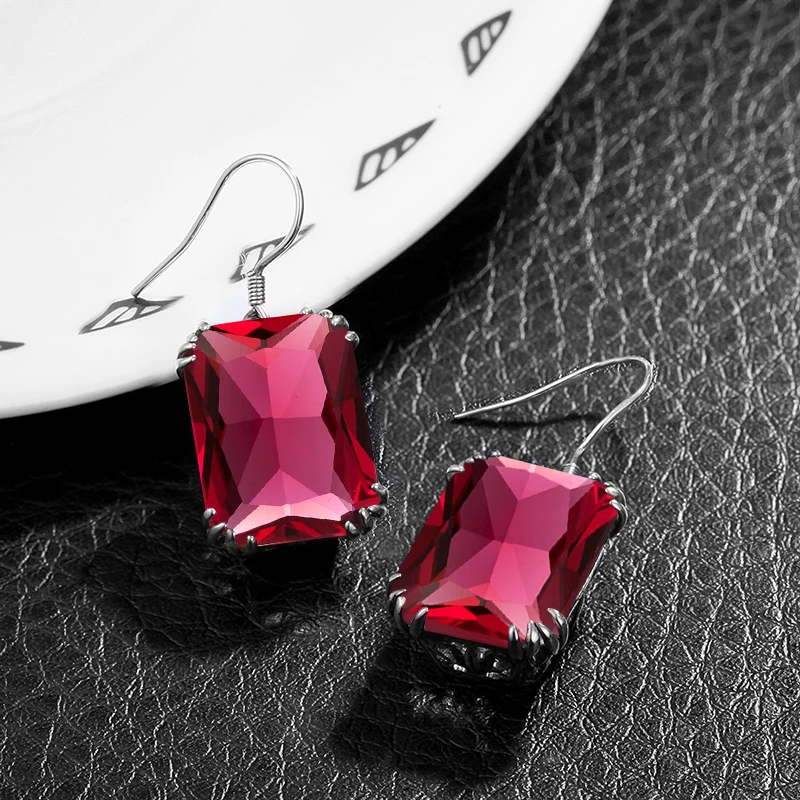 Luxury Brand Ruby Dangle Earrings 925 Sterling Silver Women Fashion Ruby Wedding Party Bridal New Vintage Jewelry