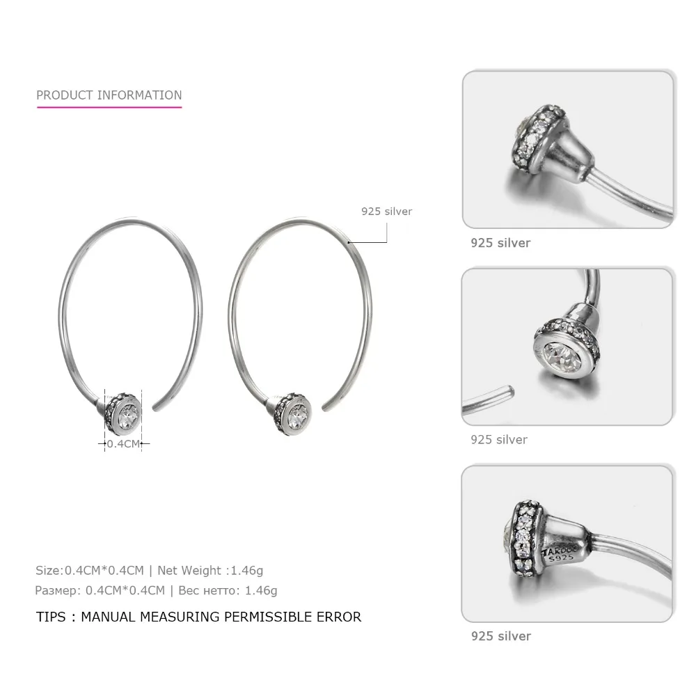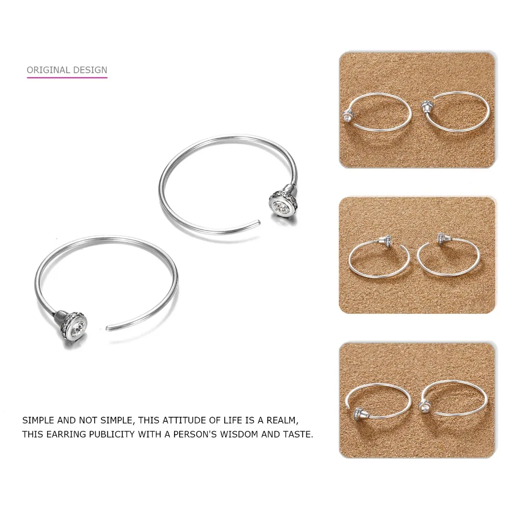 925 Silver Big Circle Open Hoop Earrings White Zircon Open Earring For Women Trendy Smooth Hoop Earrings Fine Jewelry