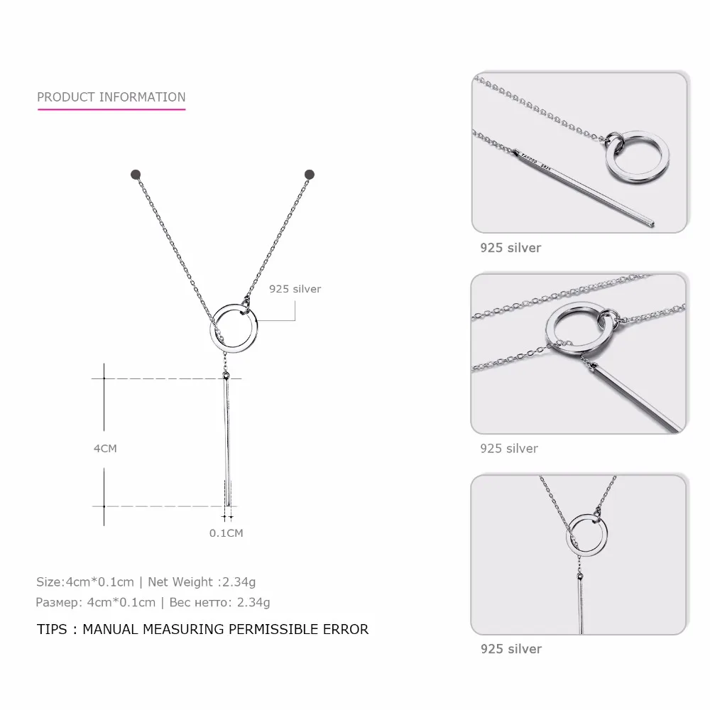 925 Sterling Silver Long Pendant Line Round Necklace Simple and Romantic Style Kolye Jewelry Necklace women Collares 2020