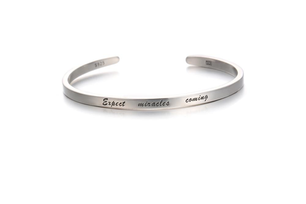 Bangles for Women Bracelets&Bangles 925 Sterling Silver Simple minima Lettering Fine Jewelry Wild Punk argento New