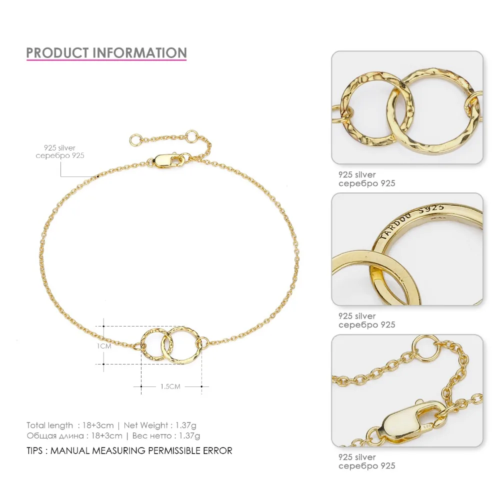 Gold Color 925 Sterling Silver Bracelets Classic Minima Bracelet for Women Simple Chain Link Fine Jewelry Bracelets
