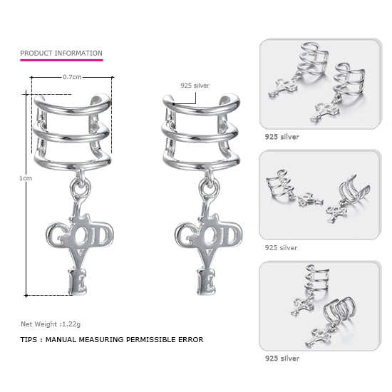 Luxury Clip on Earrings for Women Authentic 925 Sterling Silver Ear Cuffs Fine Jewelry Without Piercing