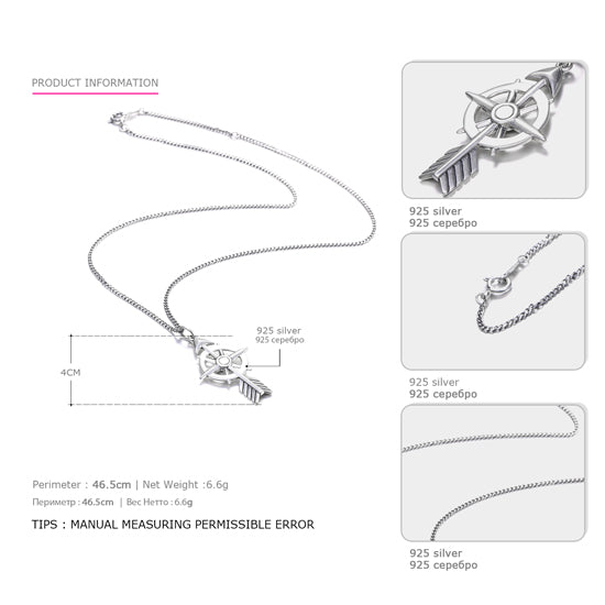 Hot Sale 925 Sterling Silver Necklace for Women Arrows&Fishbone Biagram Design Punk Style Statement Necklace Fine Jewelry