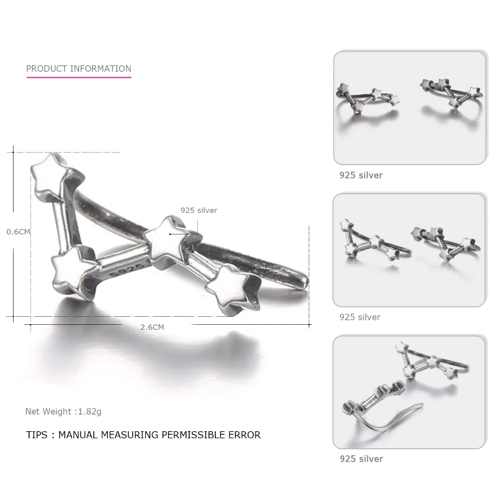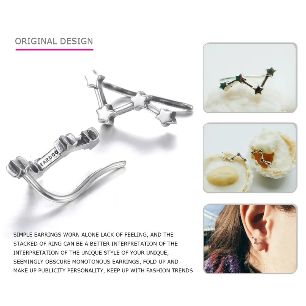 Real 925 Sterling Silver Hook Earrings for Women Four Stars Embellish Modelling Hook Earrings Brand Fine Jewelry