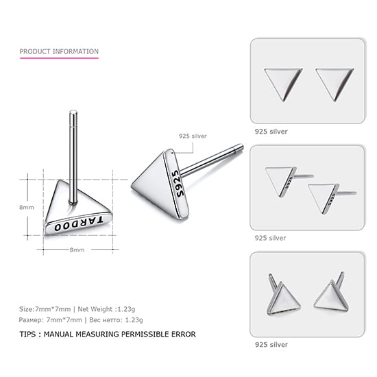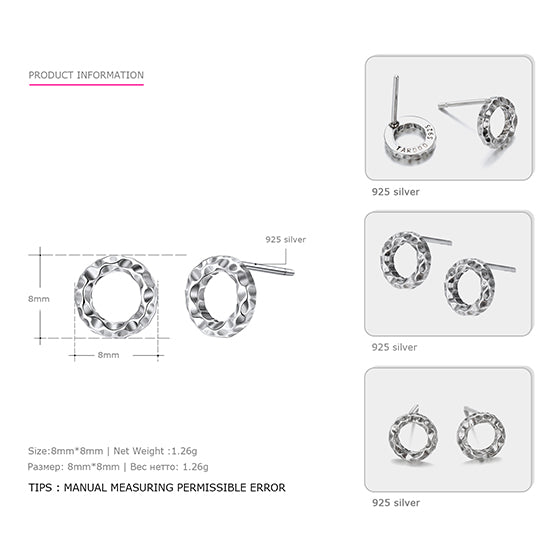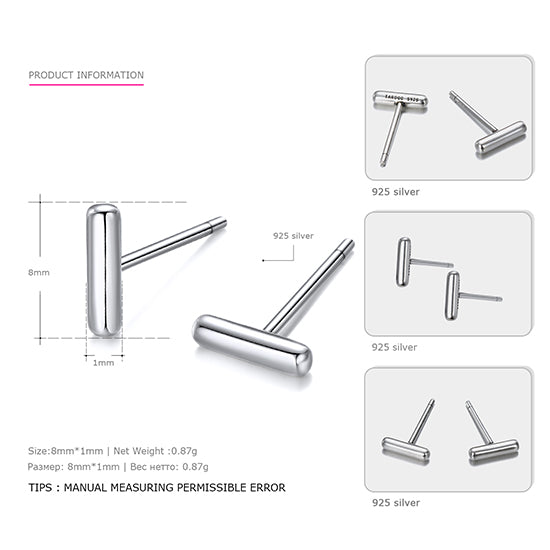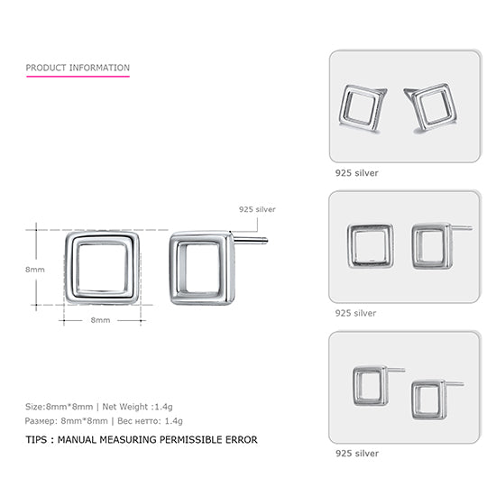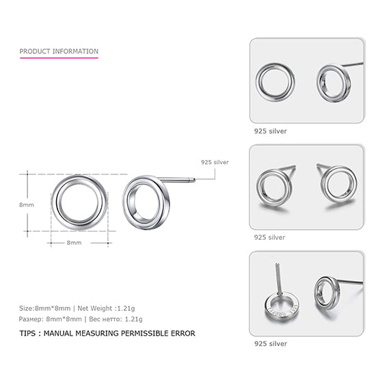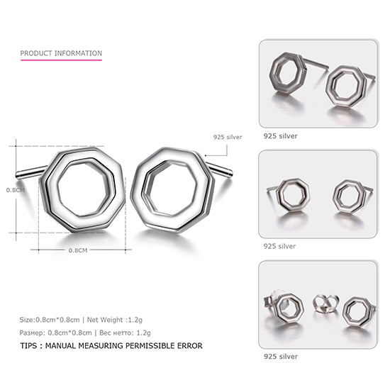 Really 925 Sterling Silver Stud Earrings for Women Geometric Shape Simple and Cute Style Fine Jewelry