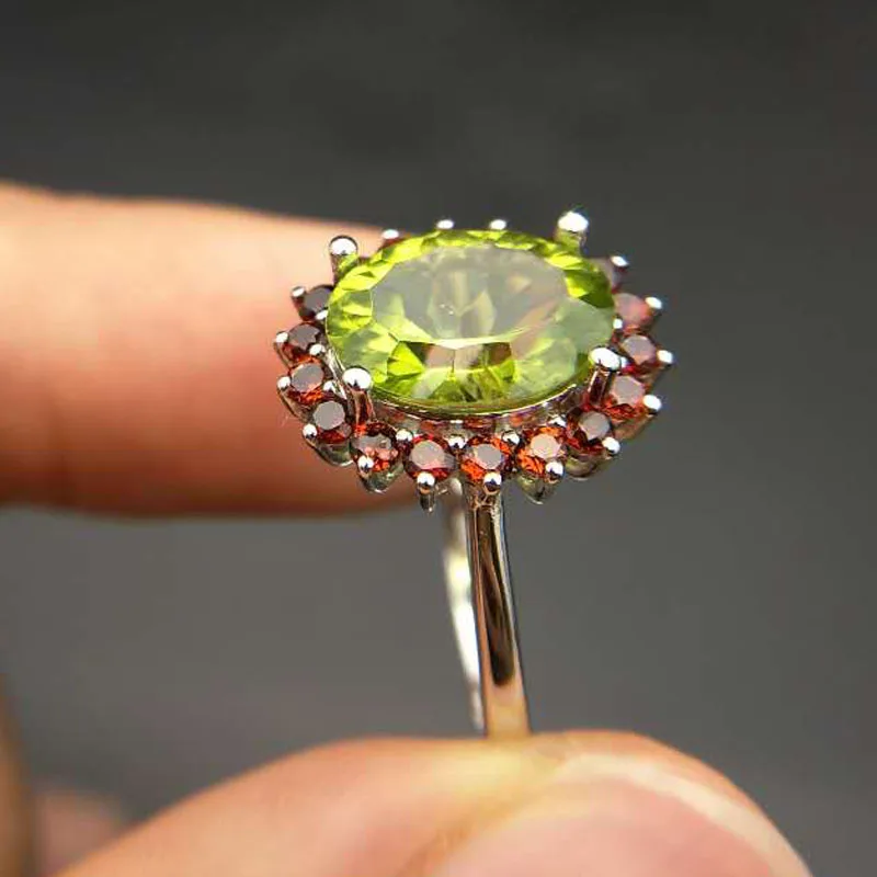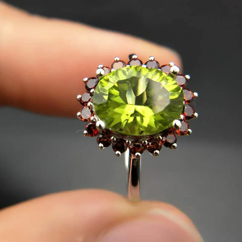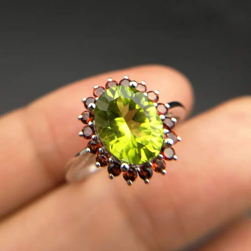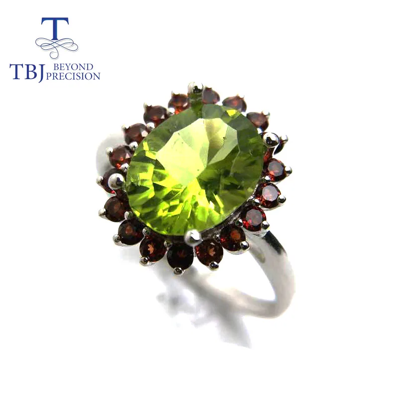 Tbj,100% Natural Peridot ov8*10 concave cut ,3ct peridot gemstone ring in 925 sterling silver colorstone jewelry with gift box