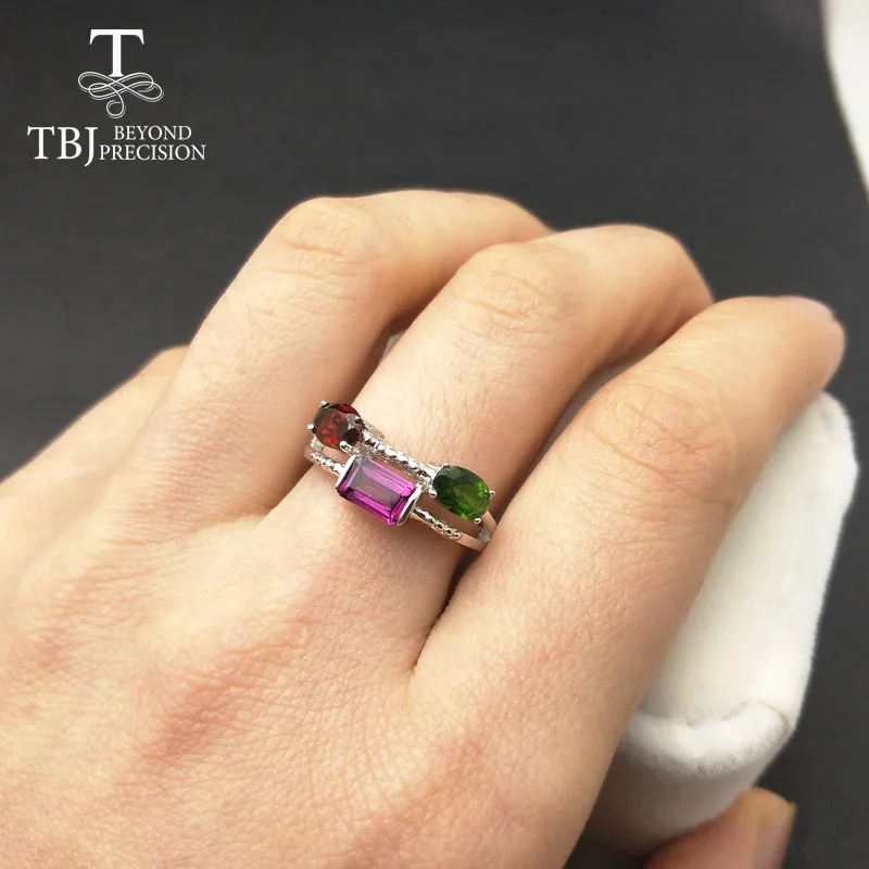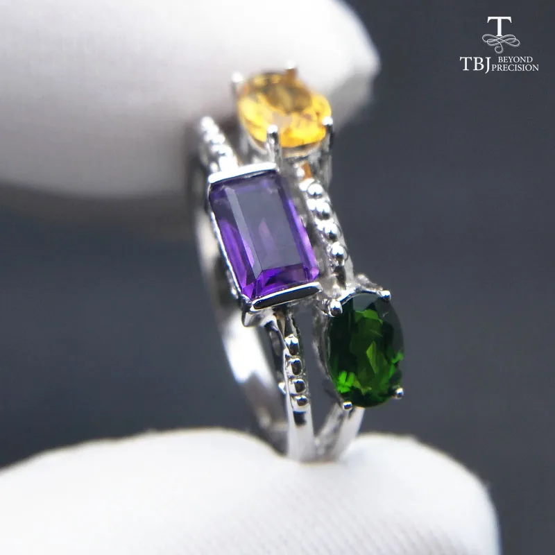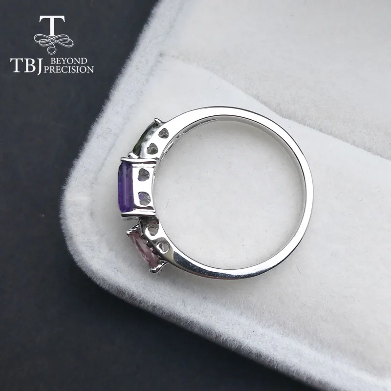 Tbj ,2020 new design ,3 color natural gemstone ring in 925 sterling silver gemstone jewelry for girls with gift box