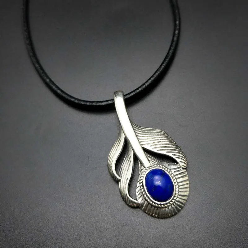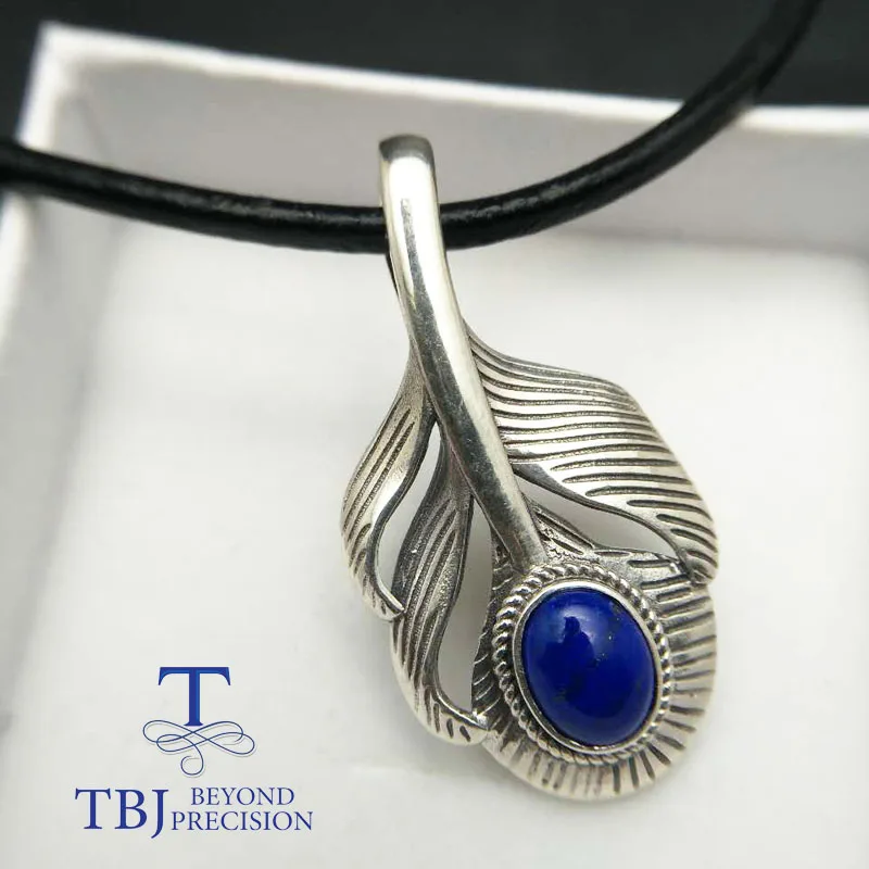 TBJ ,2020 vintage pendants with 100% natural lapis in 925 sterling silver with leather chord , vintage jewelr series