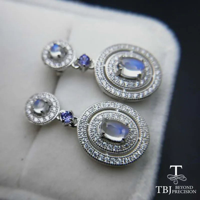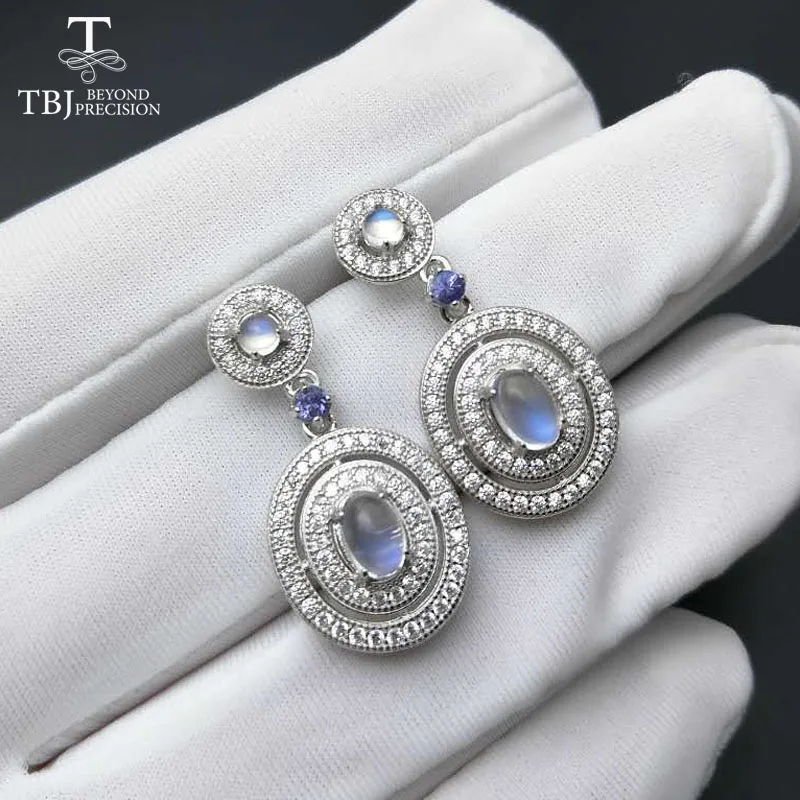 TBJ,925 Sterling silver gemstone earring with natural blue moonstone and tanzanite in Fine Jewelry for Lady with gift box