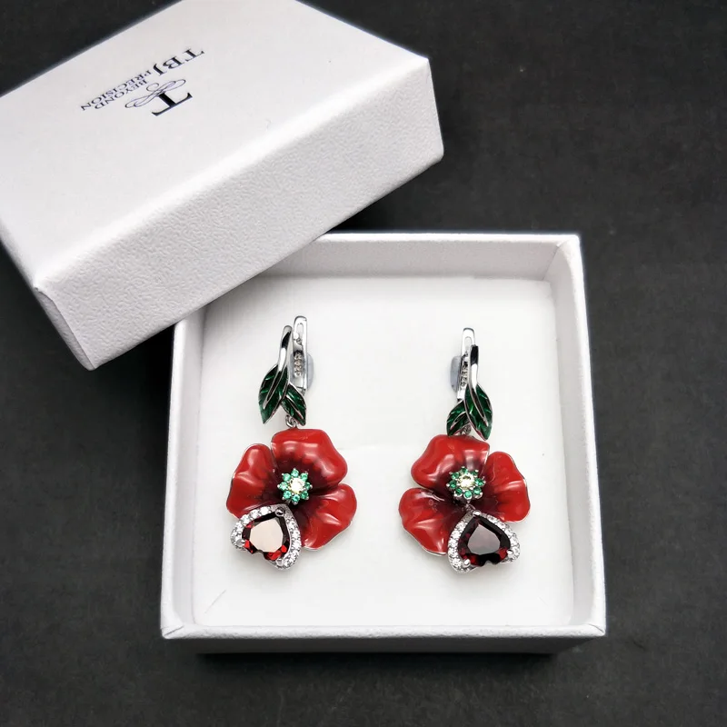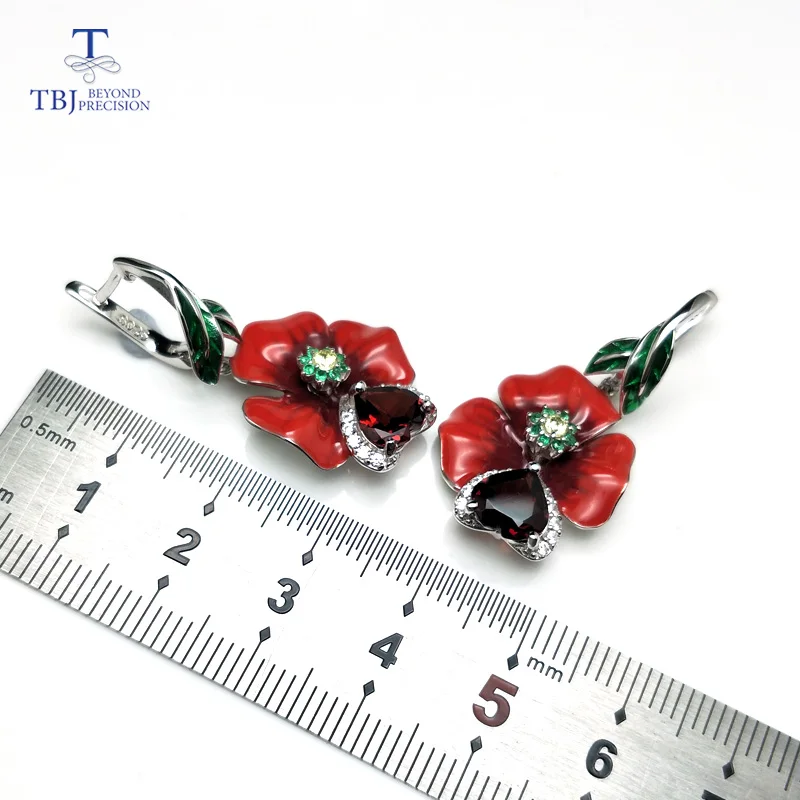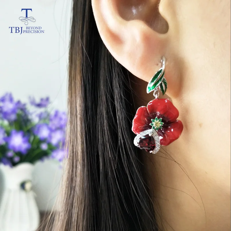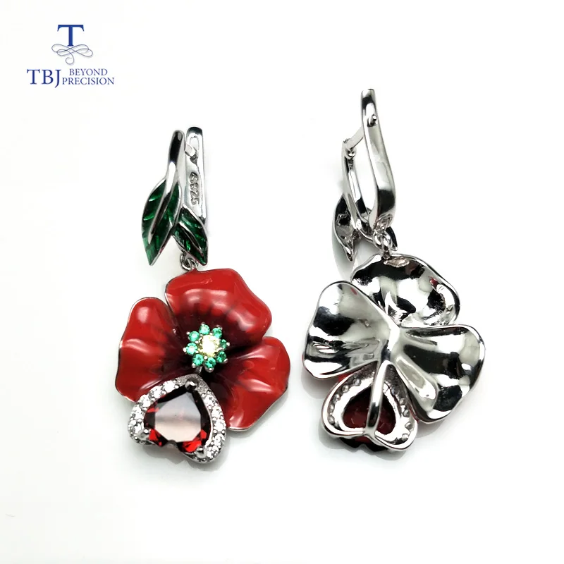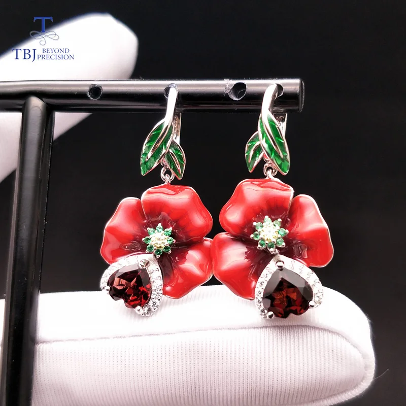 TBJ,Colorful Enamel ethnic earring with natural garnet in 925 sterling silver clasp design for ladies women as gift party wear
