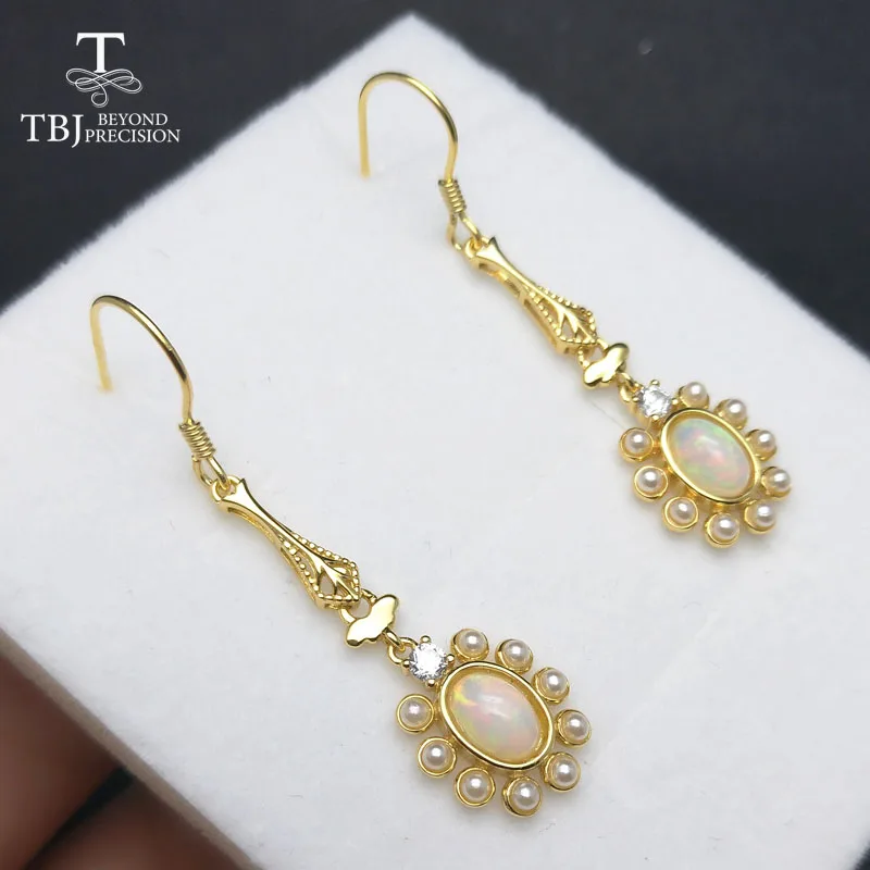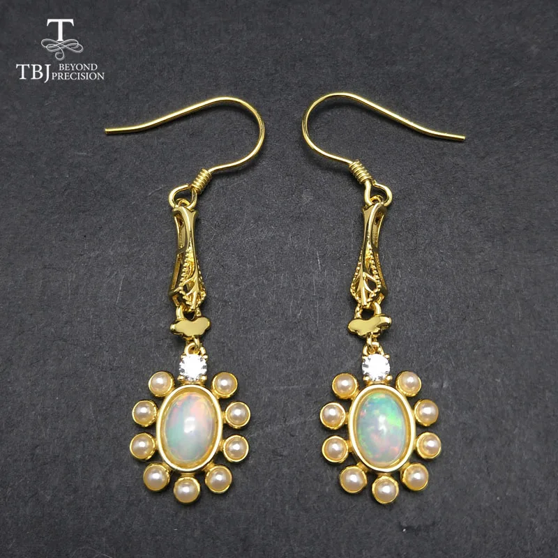 TBJ,colorful natural gemstone earring with natural ethiopian opal in 925 sterling silver gold yellow color for women with box
