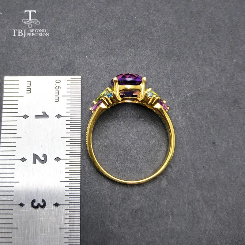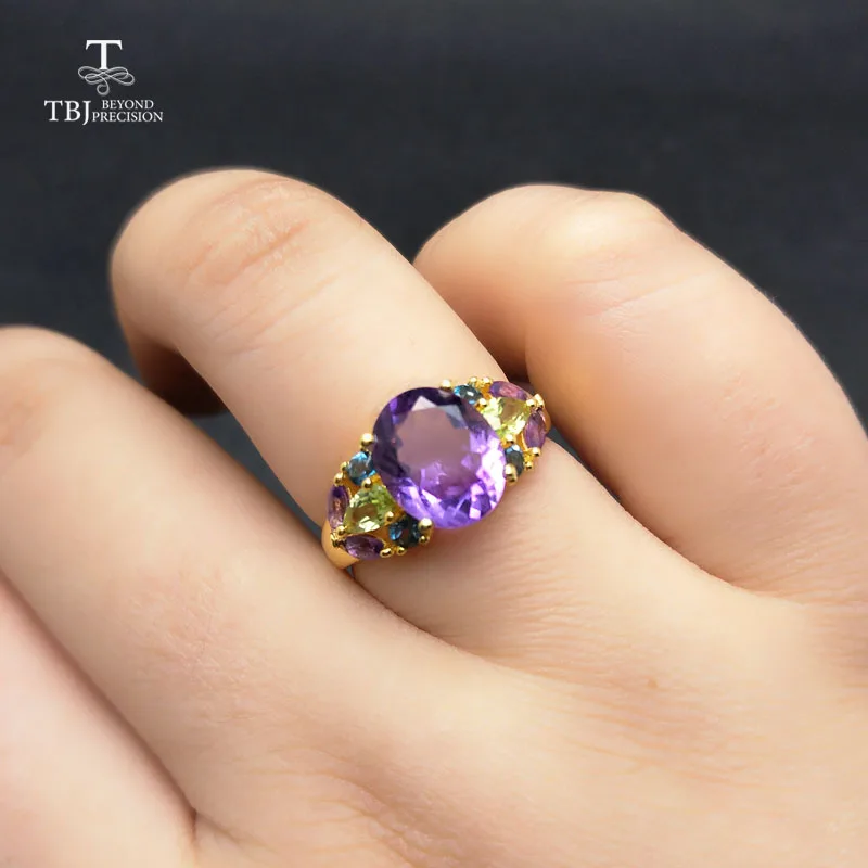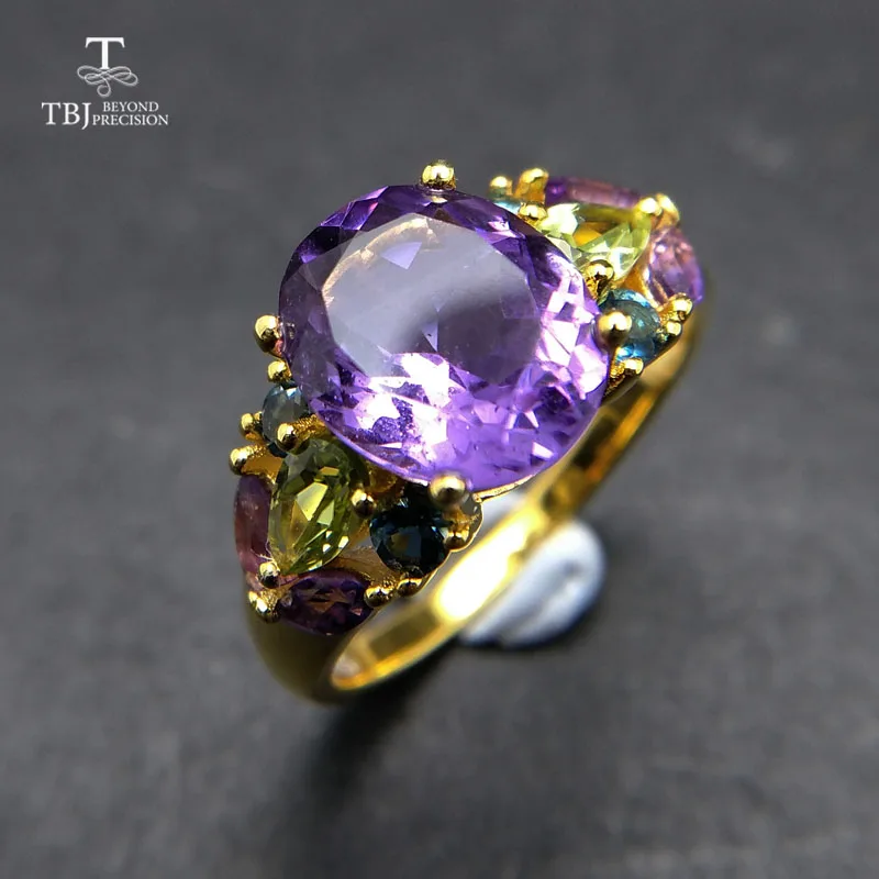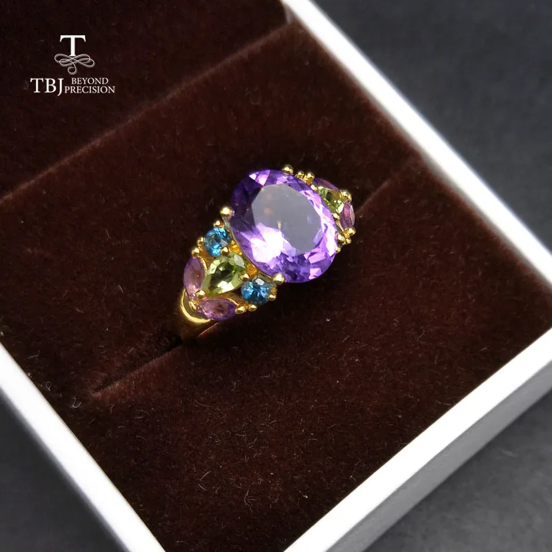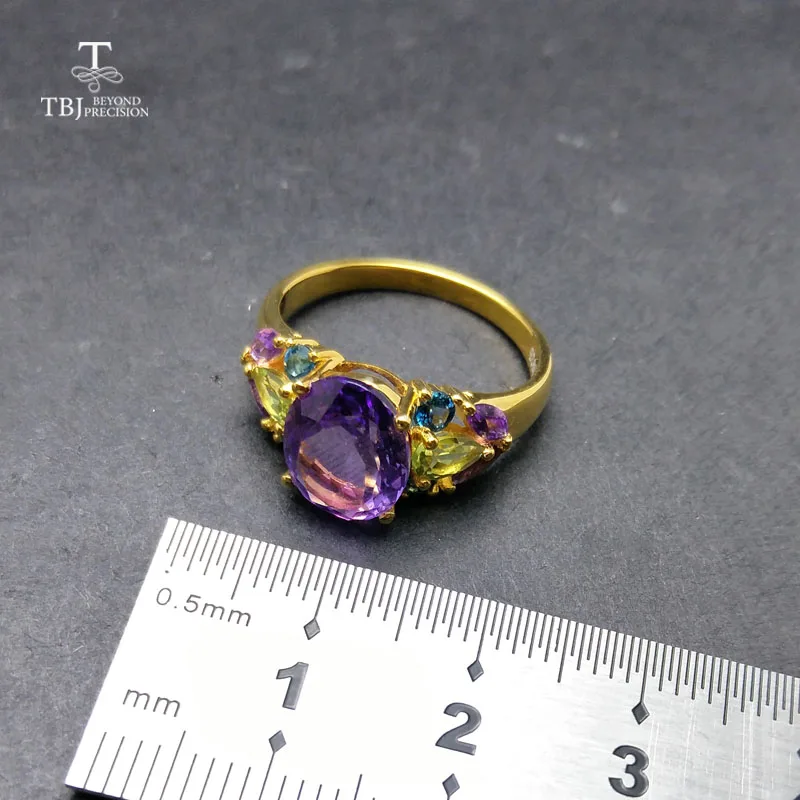 TBJ,Natural Colorful Gemstone Rings with Amethyst peridot topaz in 925 sterling silver yellow gold color,best gift for women