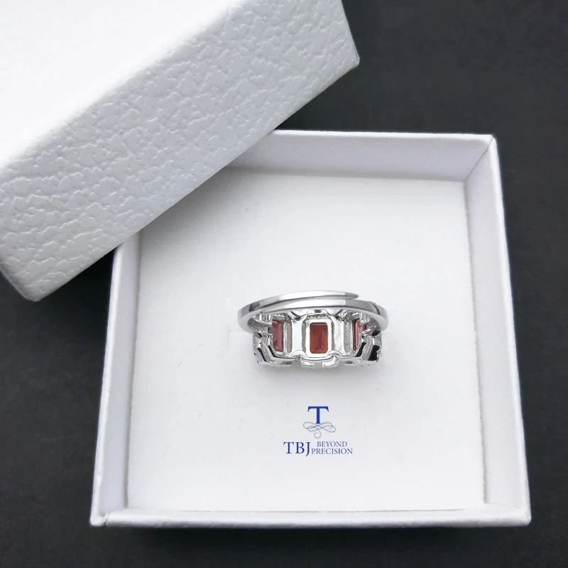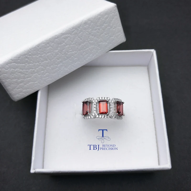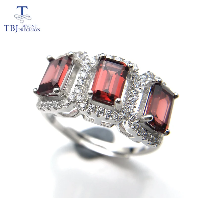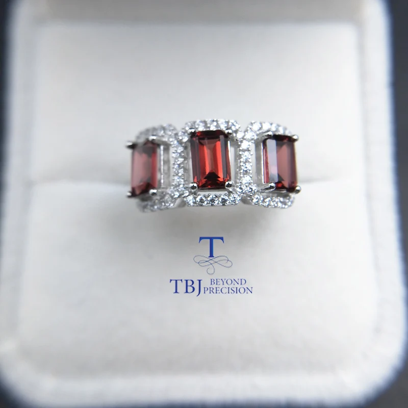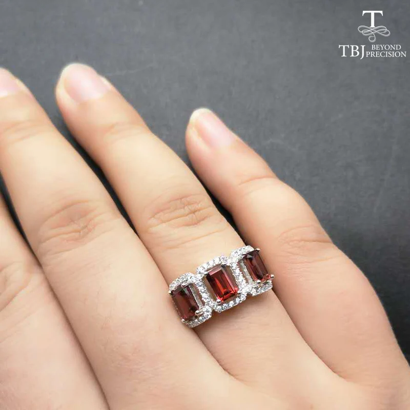 Tbj ,Simple elegant natural mozambique garnet gemstone ring 3 pc of oct 4*6 garnet in 925 sterling silver ring with jewelry box