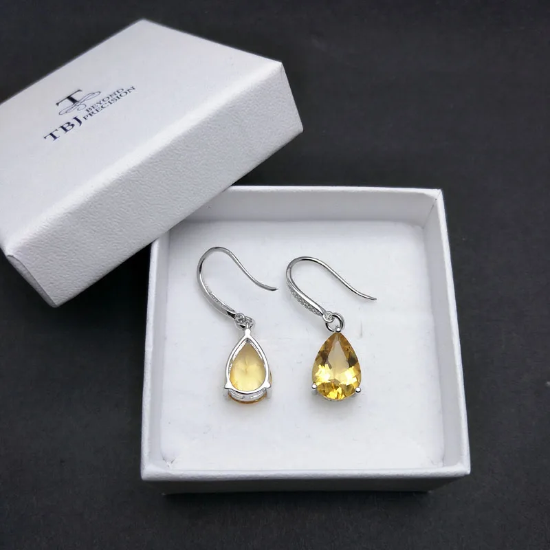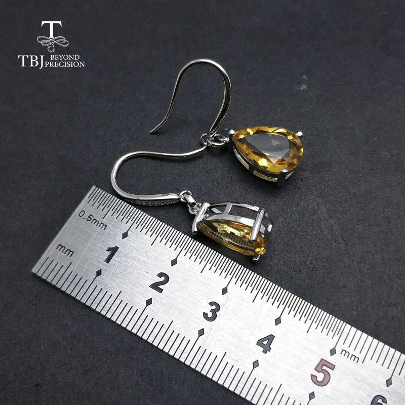 TBJ,Water Drop 5ct Genuine Brazil citrine gemstone Dangle hook Earrings Pure 925 Sterling Silver Fine Jewelry For Women